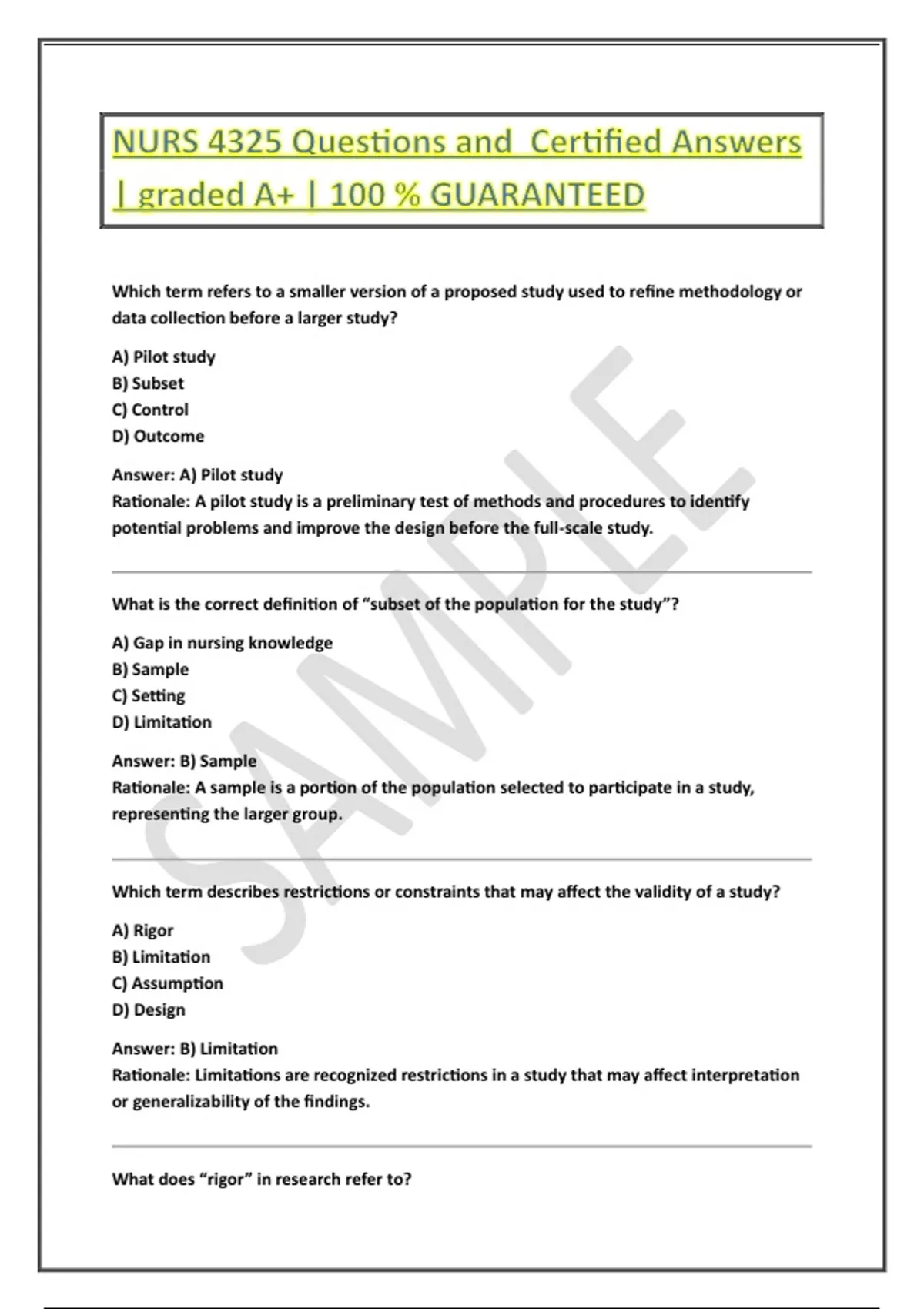 NURS 4325 Questions and Certified Answers | graded A+ | 100 % GUARANTEED