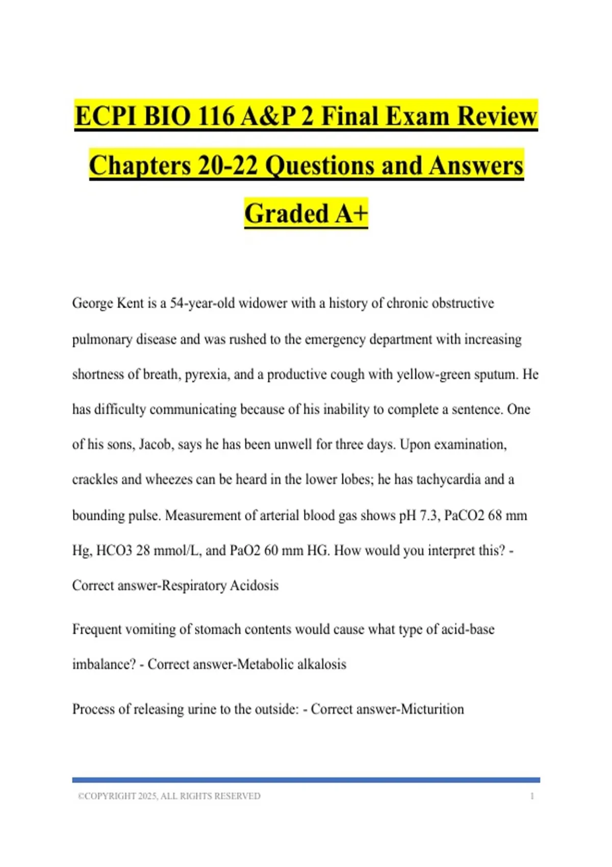 ECPI BIO 116 A&P 2 Final Exam Review Chapters 20-22 Questions and Answers Graded A+