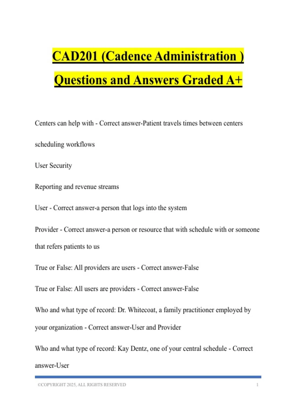CAD201 (Cadence Administration ) Questions and Answers Graded A+