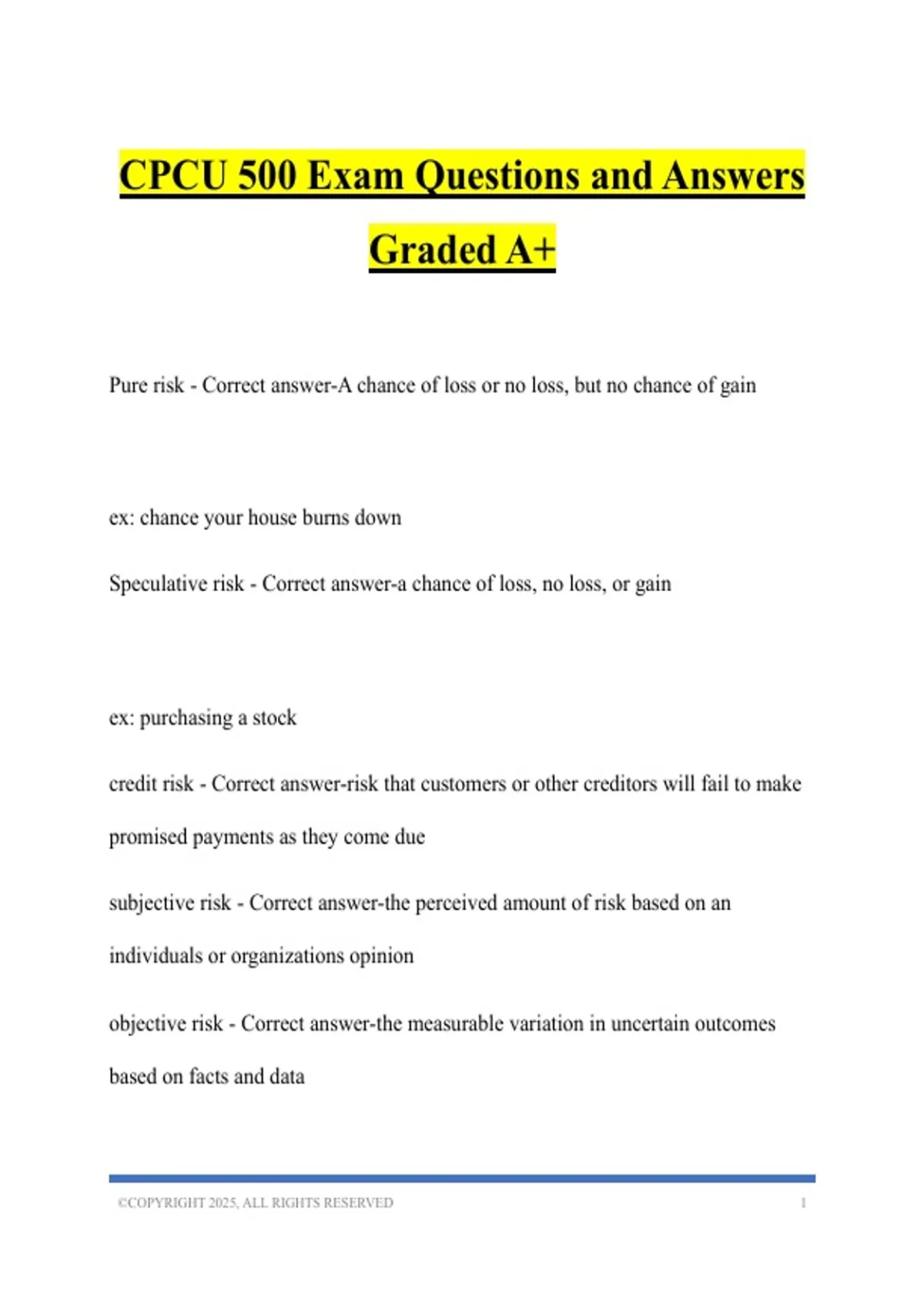 objective risk - Correct answer-the measurable variation in uncertain outcomes