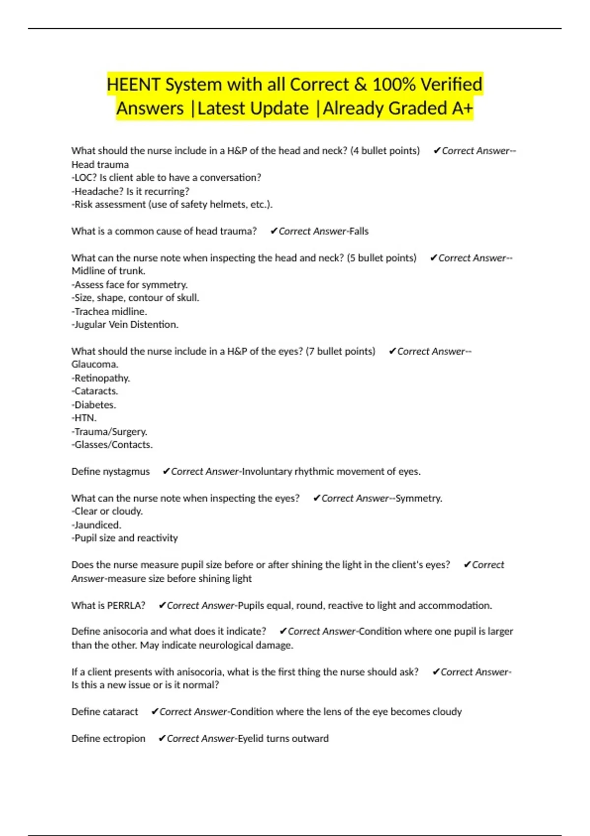 What should the nurse include in a H&P of the head and neck? (4 bullet points) ✔Correct Answer--