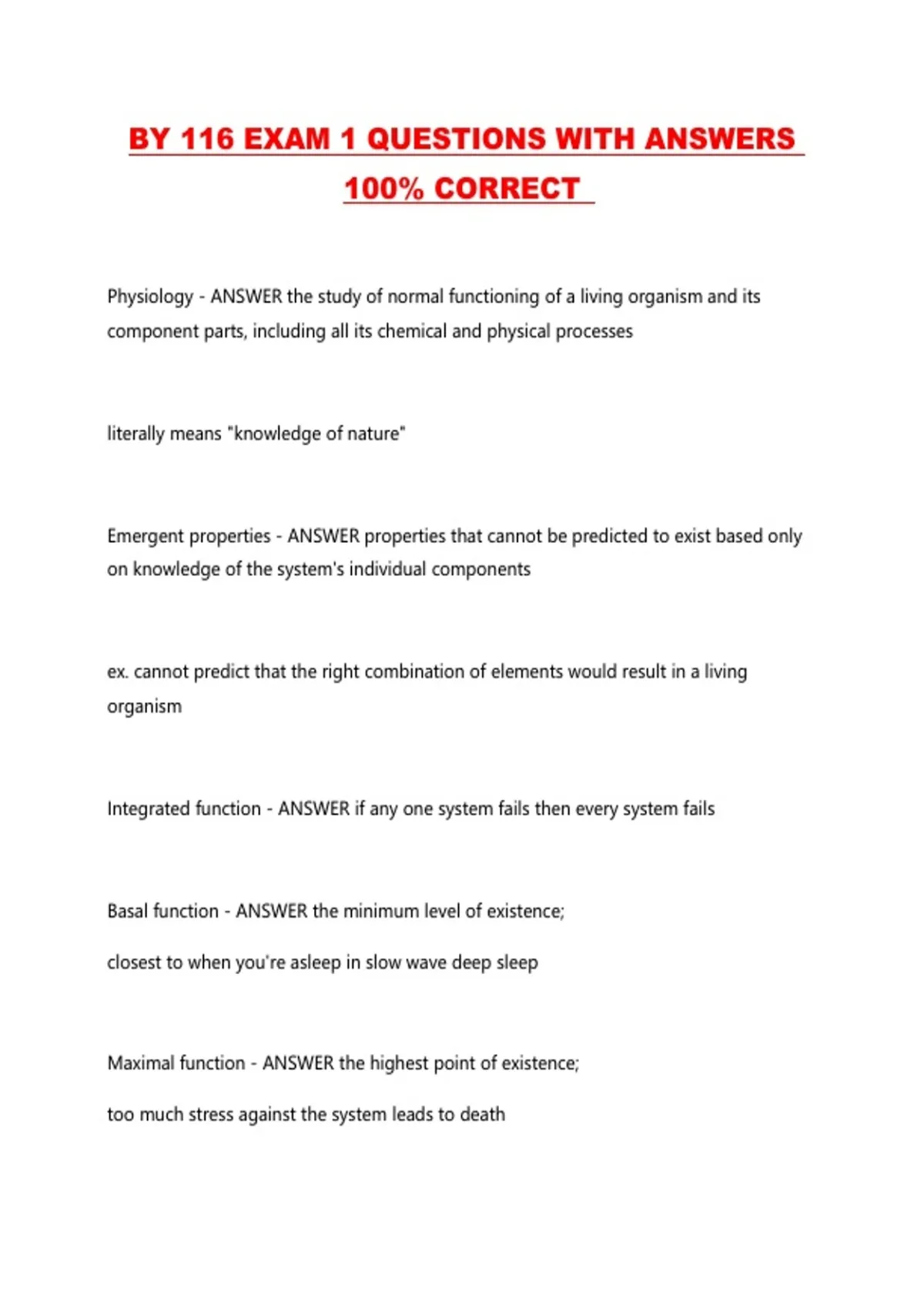 BY 116 EXAM 1 QUESTIONS WITH ANSWERS