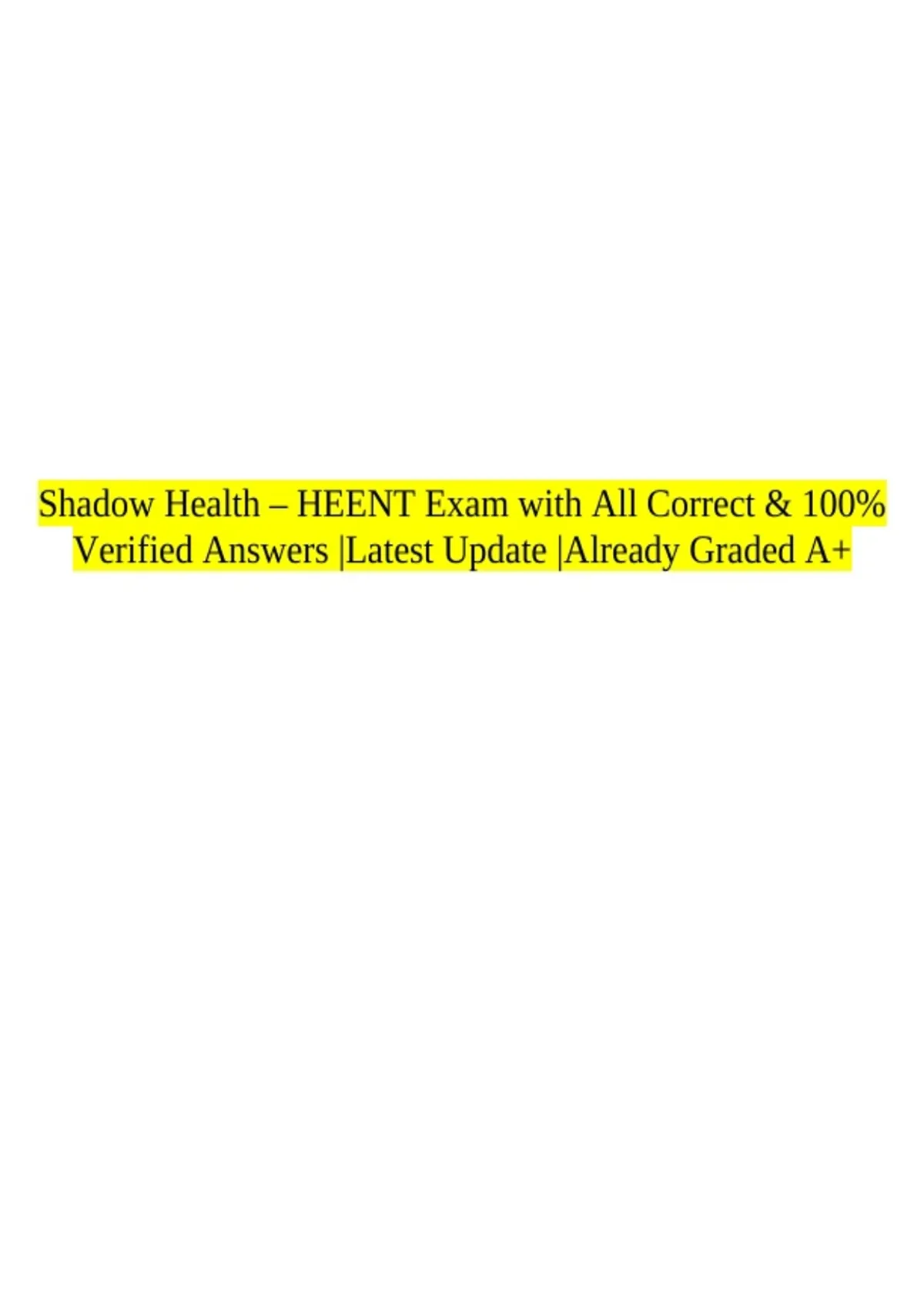 Shadow Health – HEENT Exam with All Correct & 100% Verified Answers |Latest Update |Already Graded A+