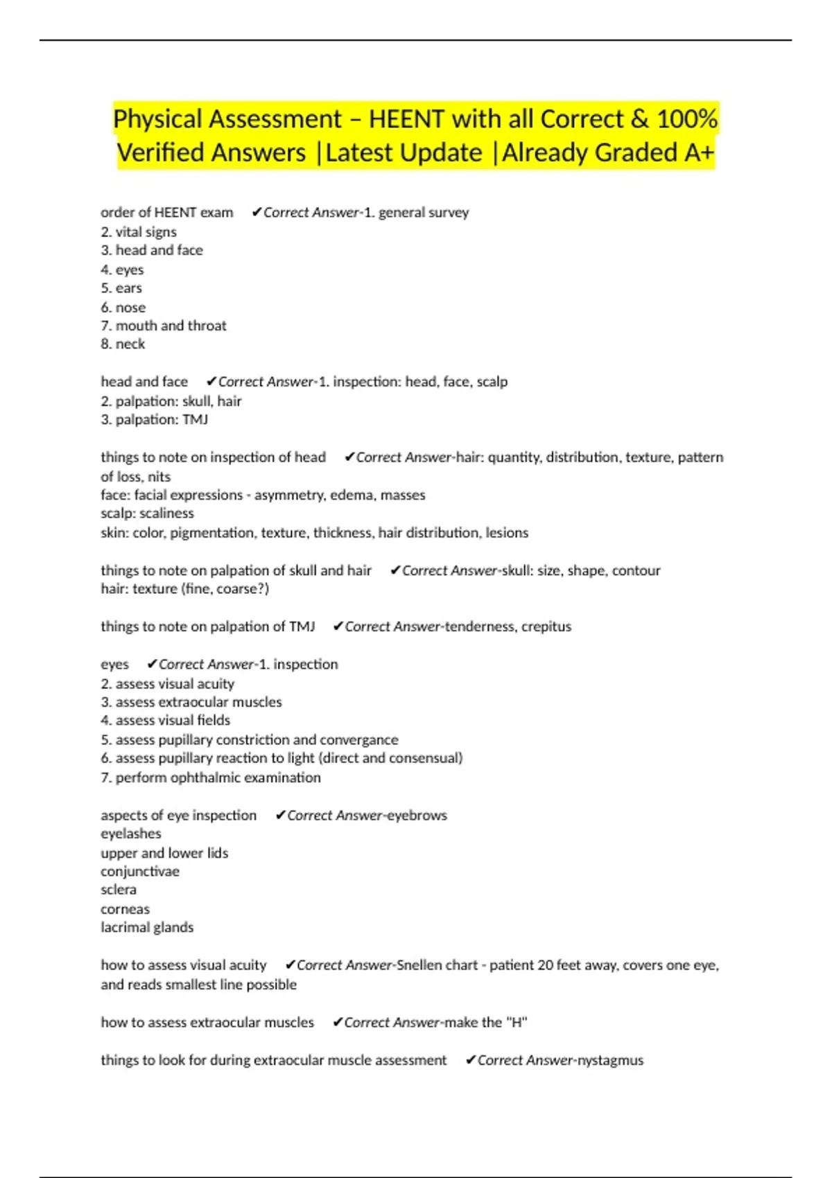 head and face ✔Correct Answer-1. inspection: head, face, scalp