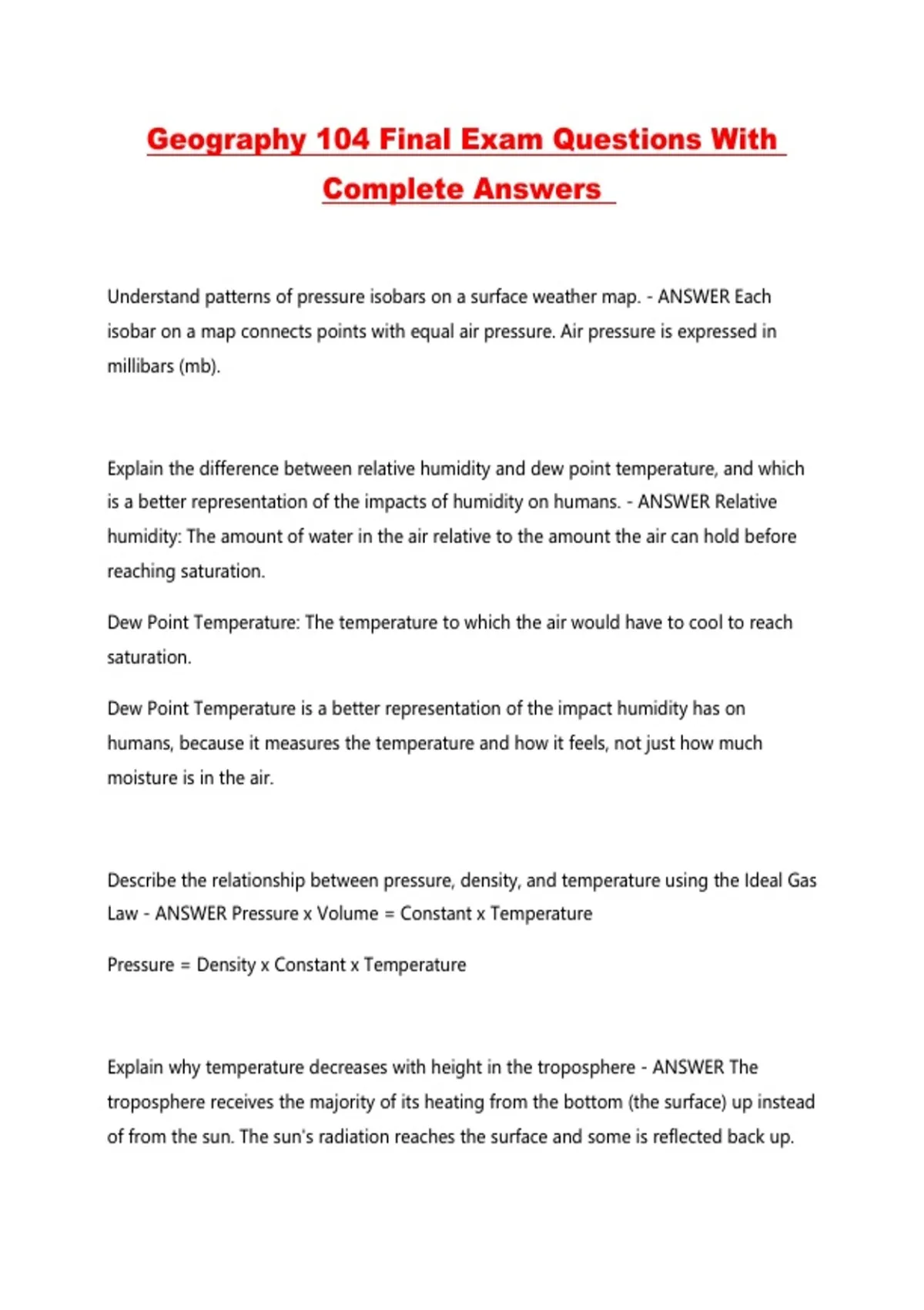 Geography 104 Final Exam Questions With