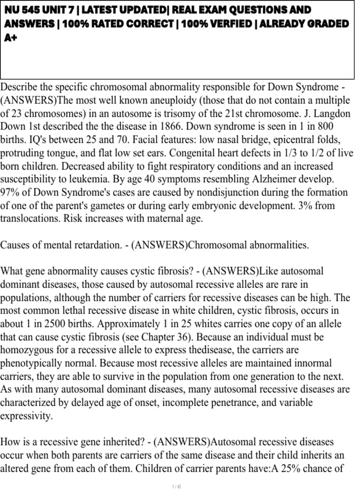 , NU 545 UNIT 7 | LATEST UPDATED| REAL EXAM QUESTIONS AND