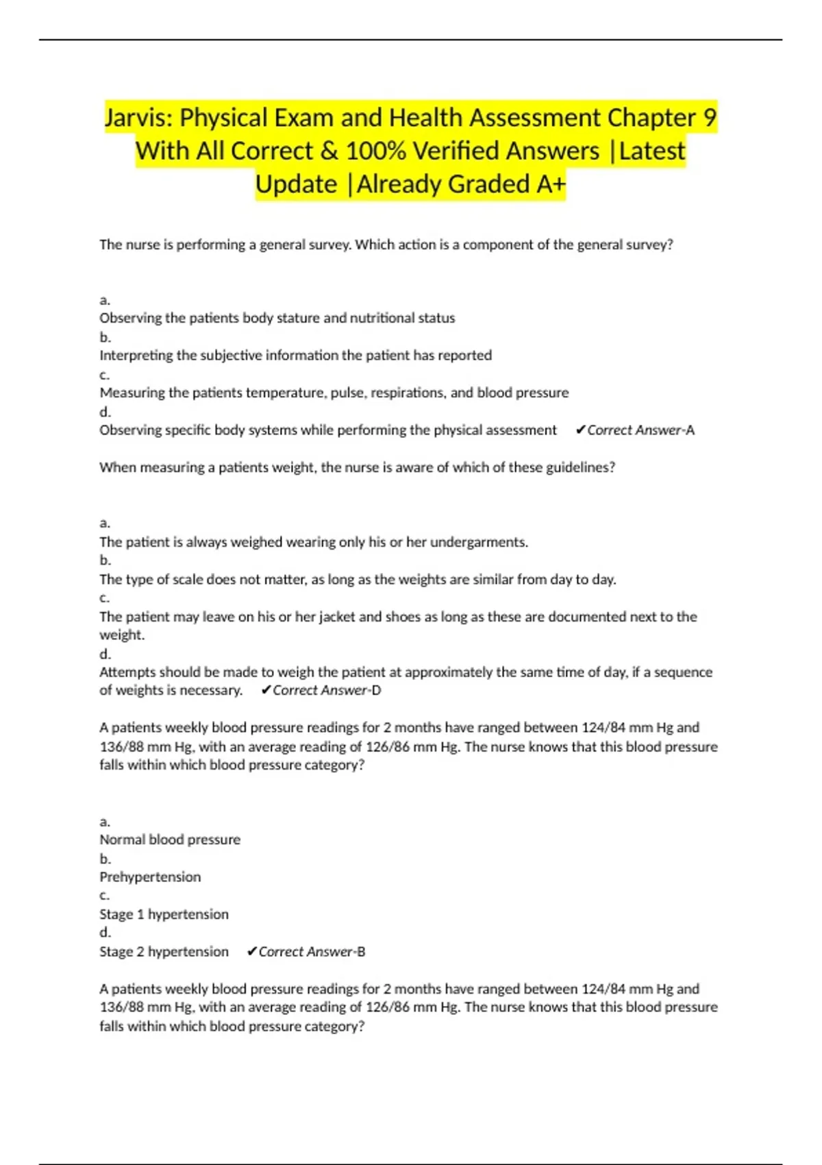 Stage 2 hypertension ✔Correct Answer-A