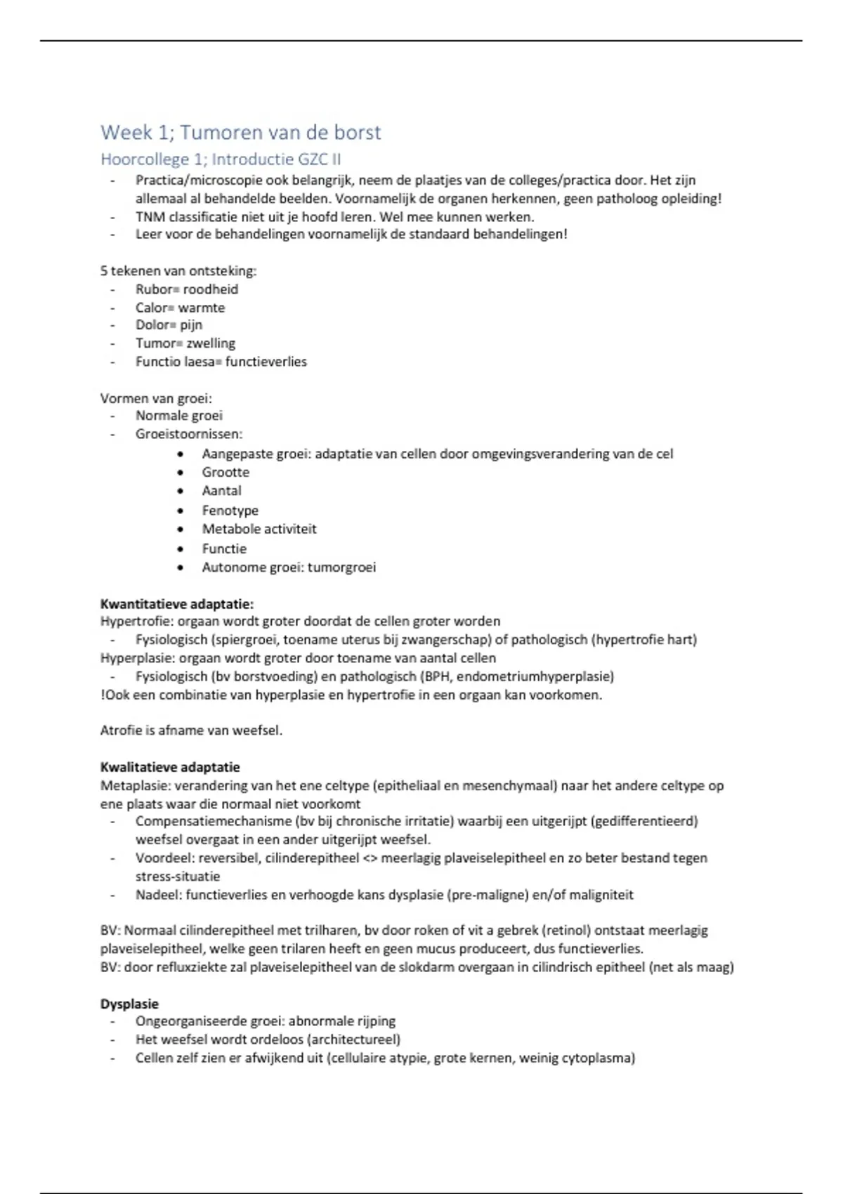 Week 1; Tumoren van de borst