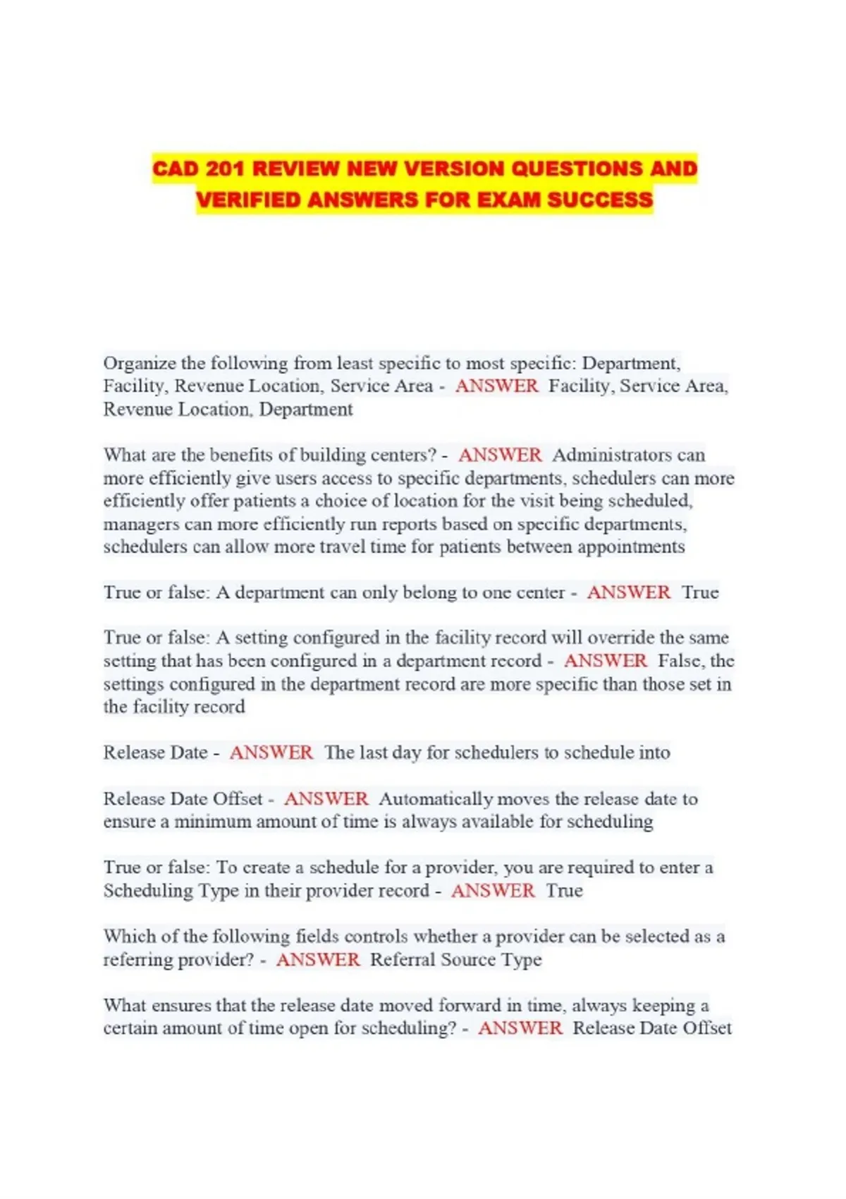 CAD 201 REVIEW NEW VERSION QUESTIONS AND VERIFIED ANSWERS FOR EXAM SUCCESS
