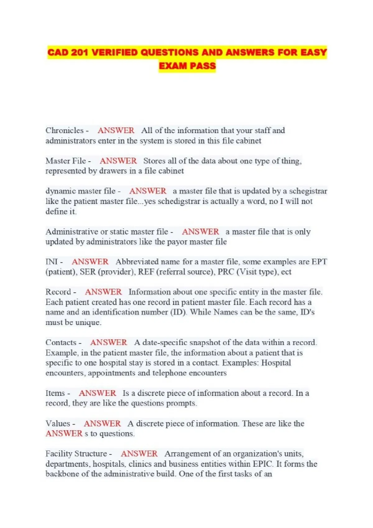 CAD 201 VERIFIED QUESTIONS AND ANSWERS FOR EASY EXAM PASS