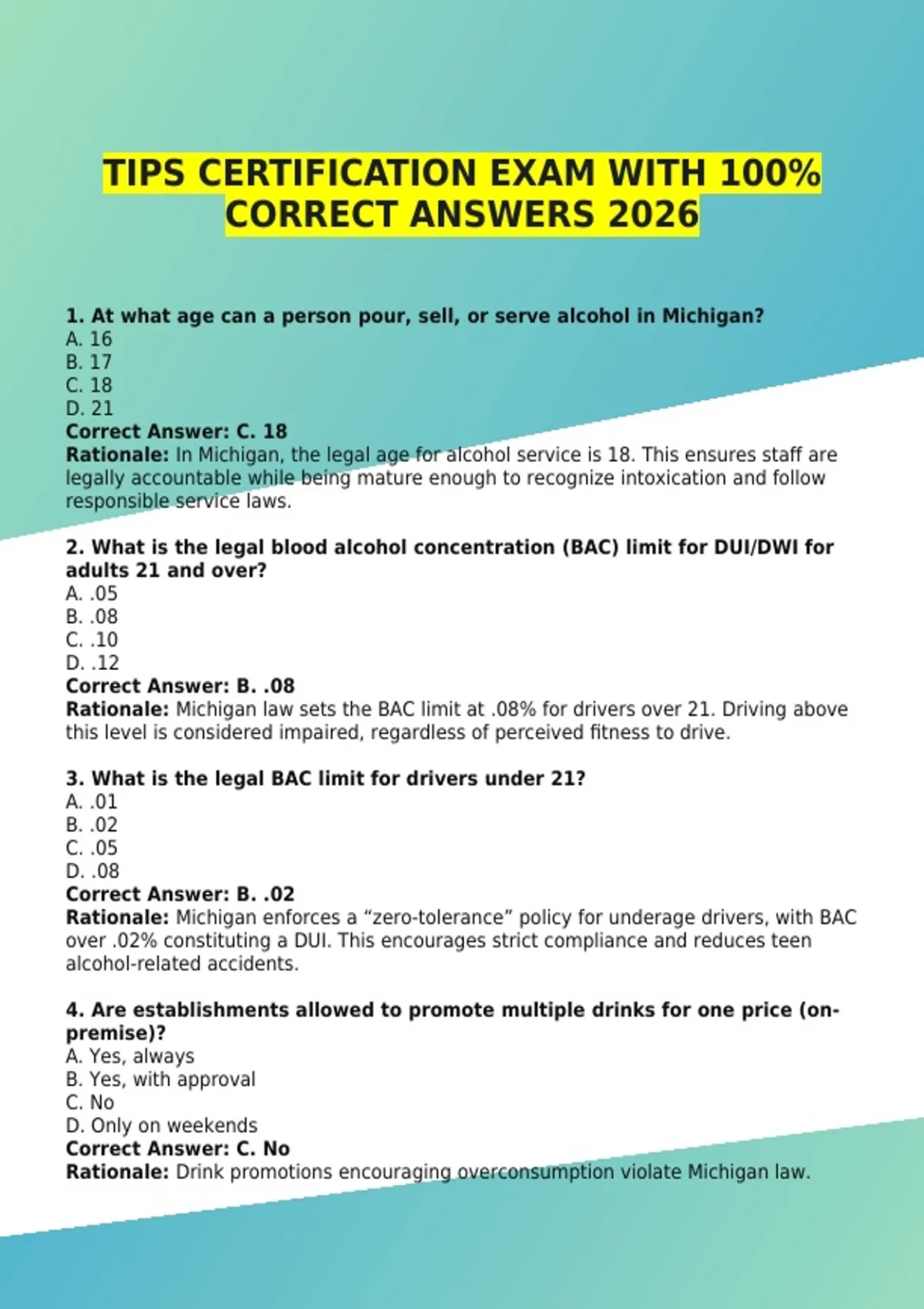 TIPS CERTIFICATION EXAM WITH 100% CORRECT ANSWERS 2026