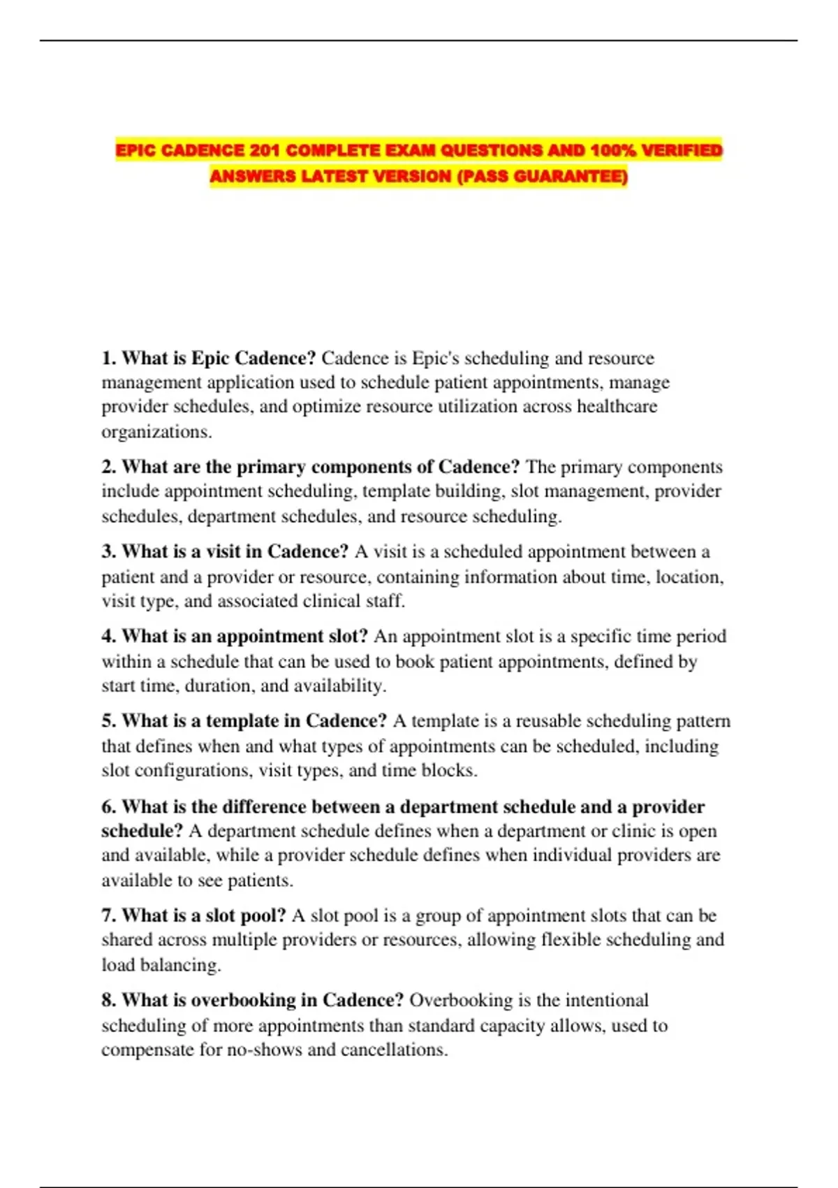 EPIC CADENCE 201 COMPLETE EXAM QUESTIONS AND 100% VERIFIED