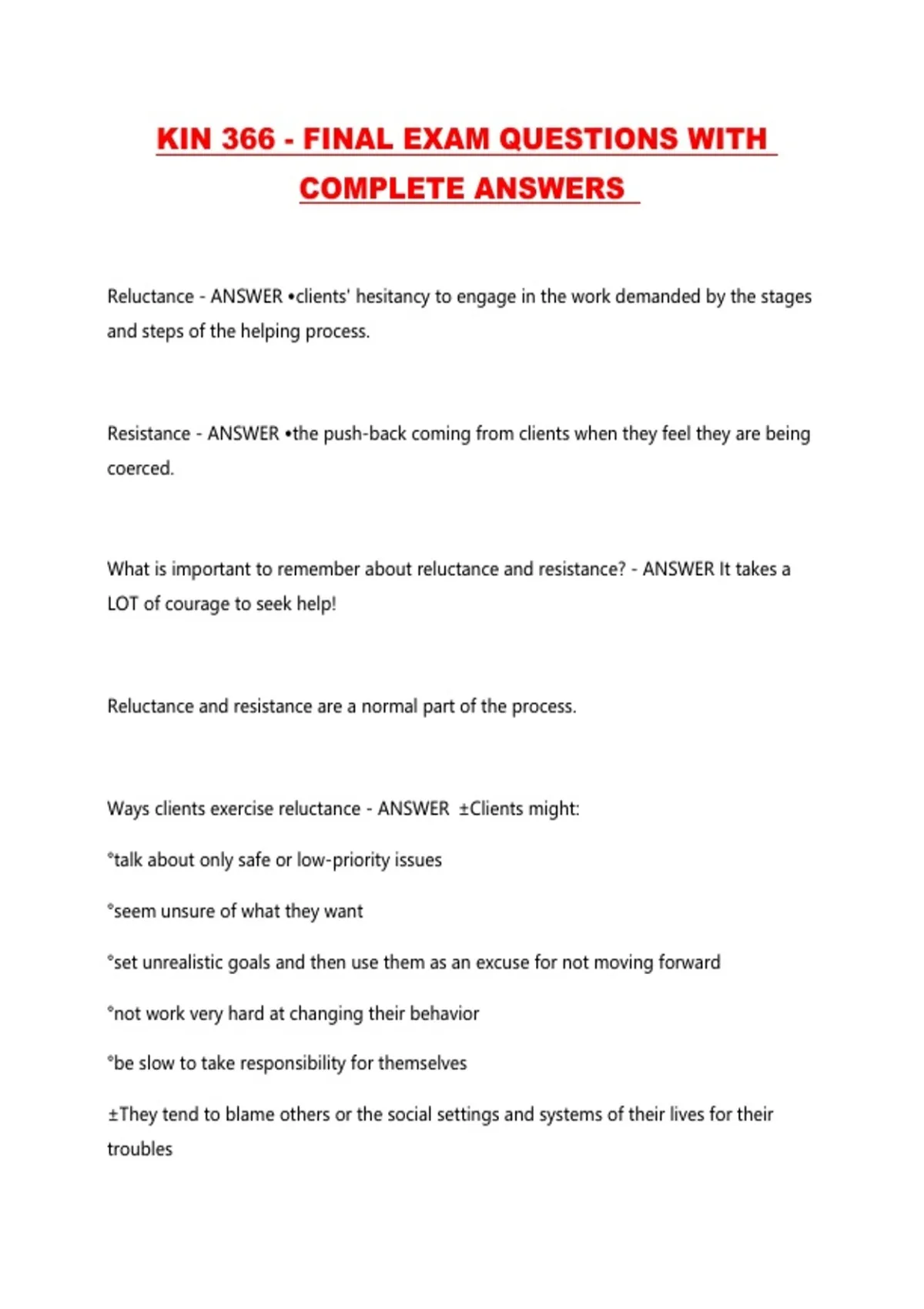 KIN 366 - FINAL EXAM QUESTIONS WITH COMPLETE ANSWERS ...