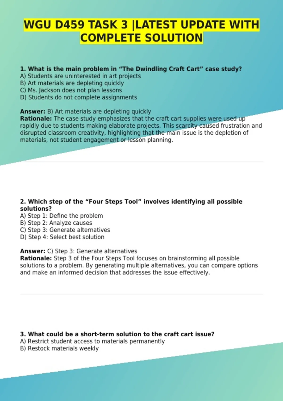 Rationale: Eliminating art activities does not address the underlying problem and