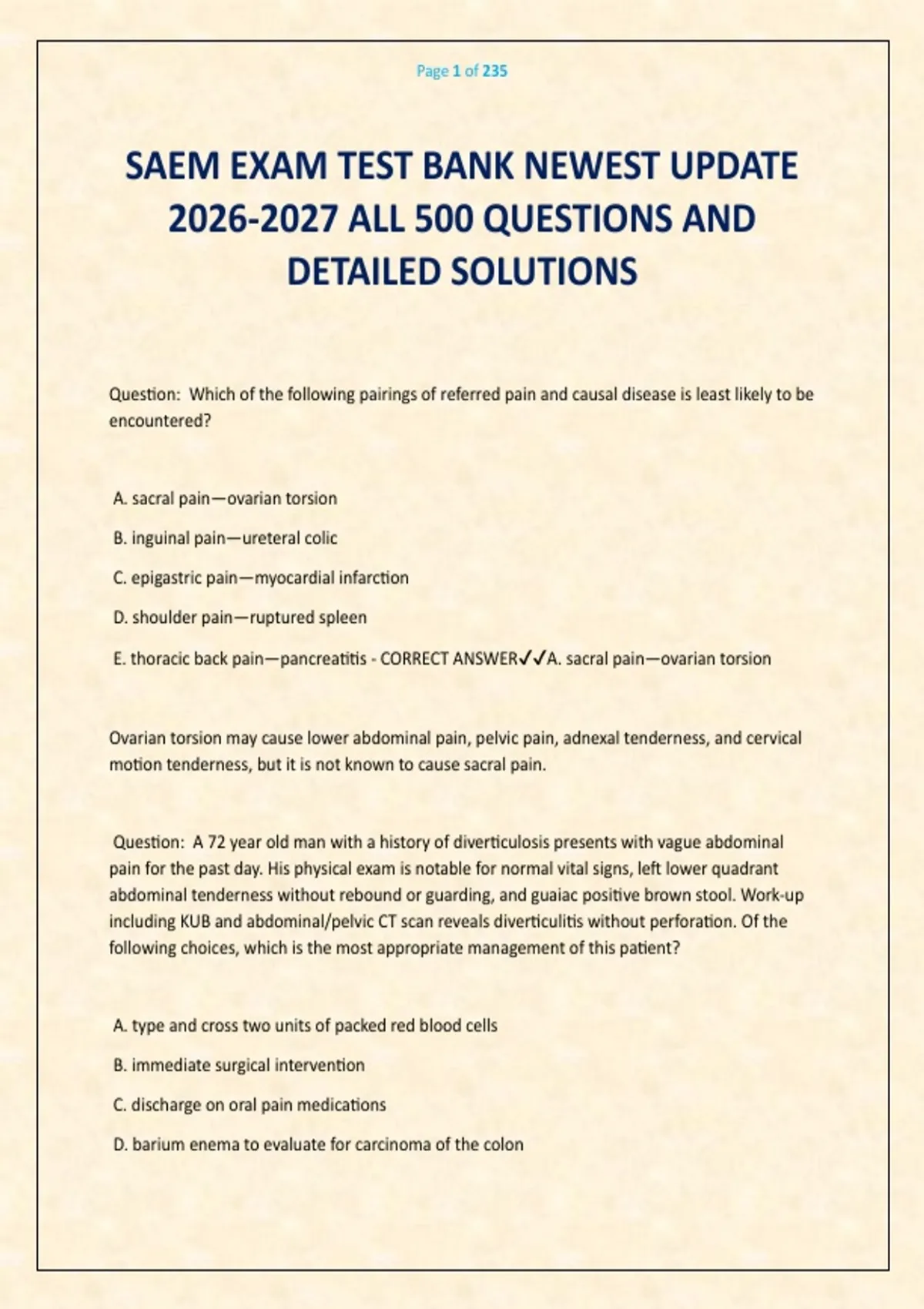 SAEM EXAM TEST BANK NEWEST UPDATE
