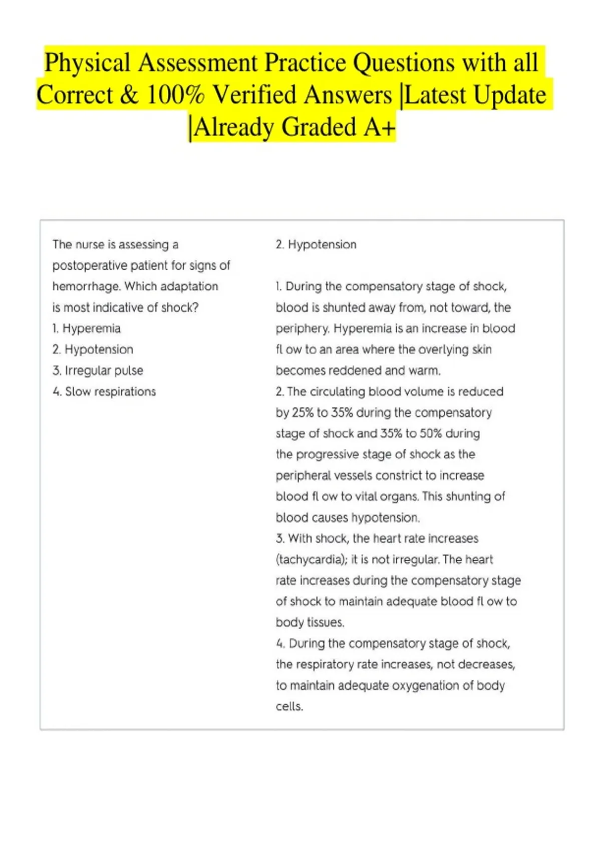 Physical Assessment Practice Questions with all Correct & 100% Verified Answers |Latest Update |Already Graded A+