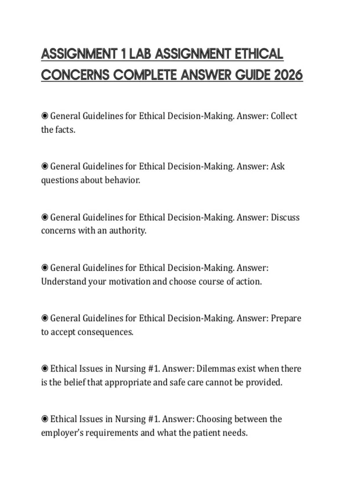 ◉ General Guidelines for Ethical Decision-Making. Answer: