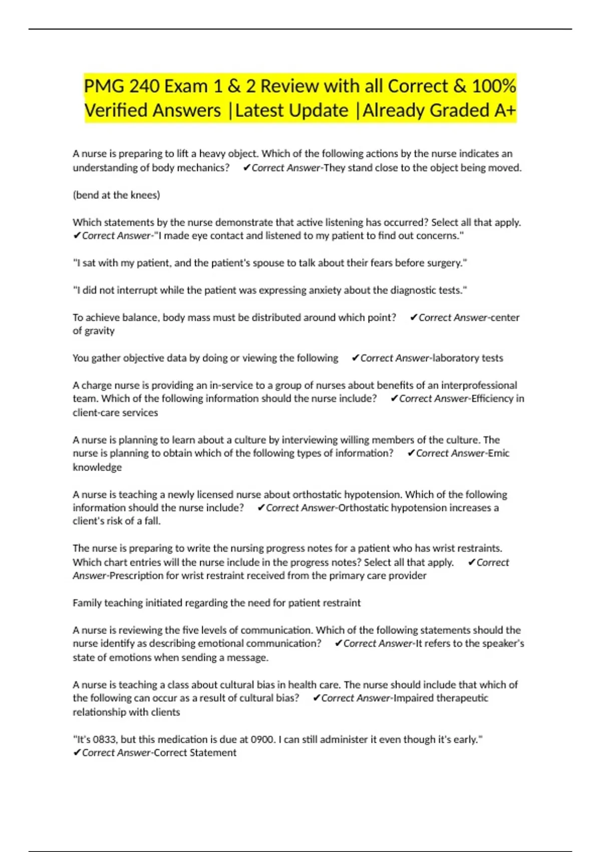 PMG 240 Exam 1 & 2 Review with all Correct & 100%