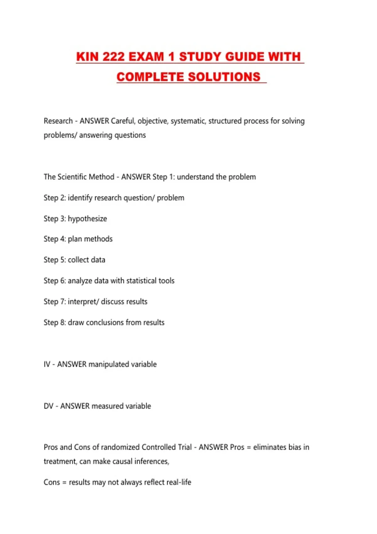 KIN 222 EXAM 1 STUDY GUIDE WITH COMPLETE SOLUTIONS ...