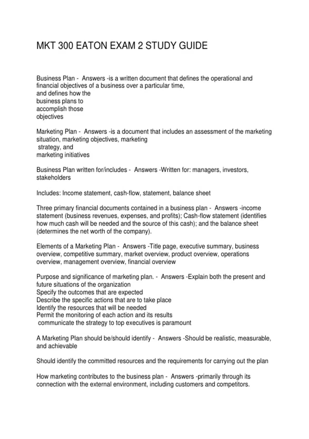 MKT 300 EATON EXAM 2 STUDY GUIDE