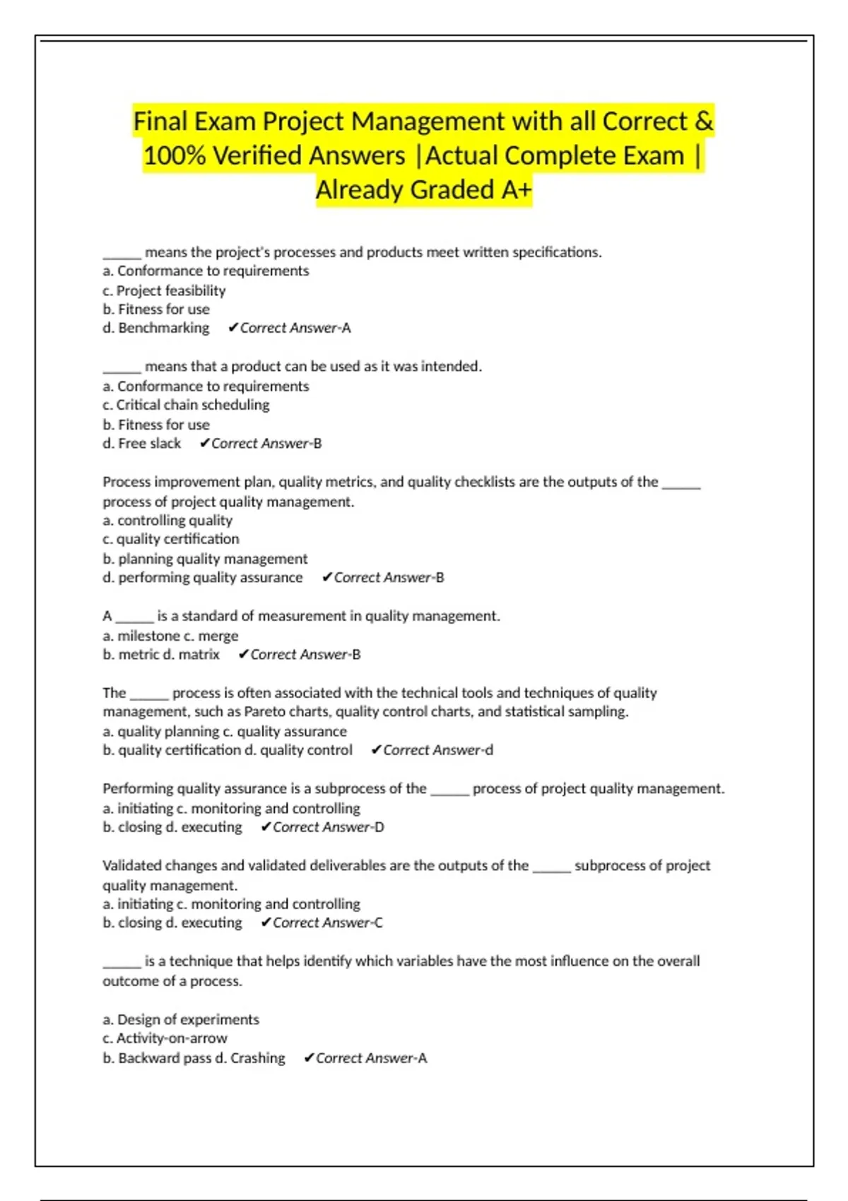 b. Conformance d. Fitness for use ✔Correct Answer-A
