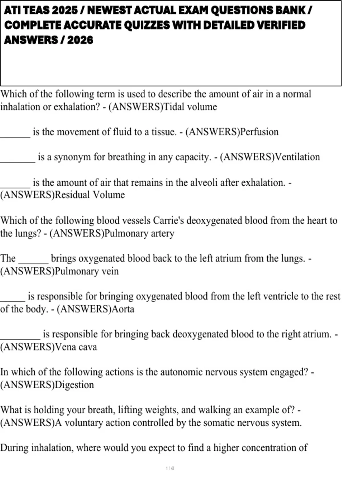 , ATI TEAS 2025 / NEWEST ACTUAL EXAM QUESTIONS BANK /