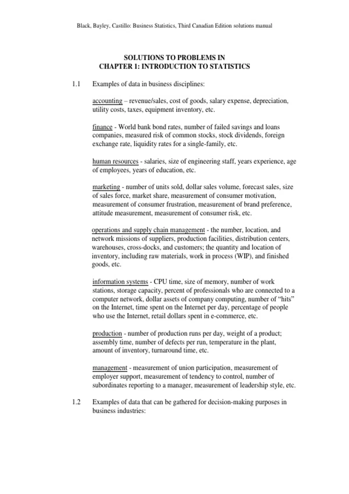 1.1 Examples of data in business disciplines: