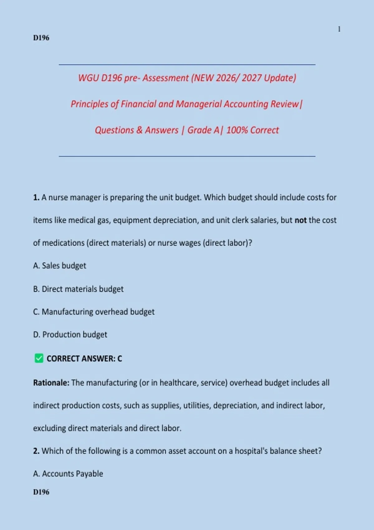 WGU D196 pre- Assessment (NEW 2026/ 2027 Update)