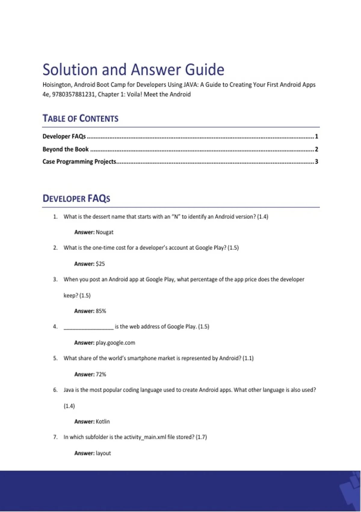 3. When you post an Android app at Google Play, what percentage of the app price does the developer