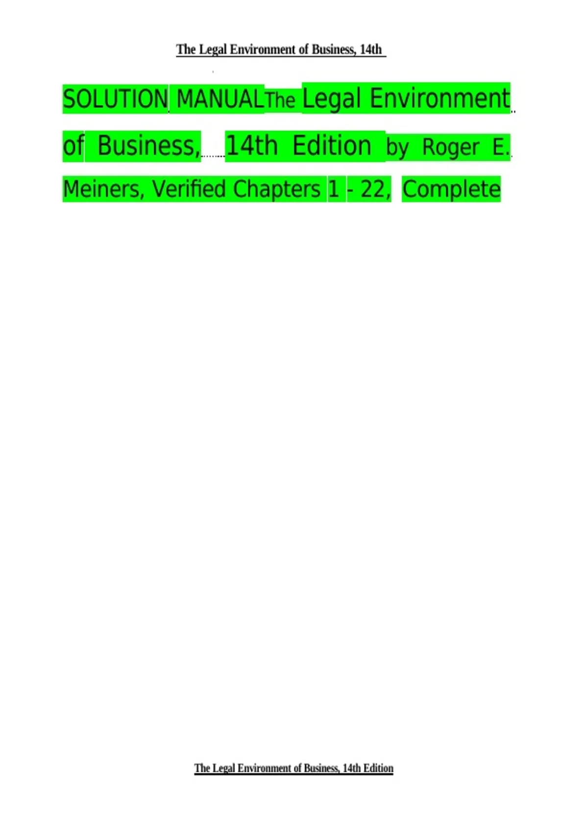 The Legal Environment of Business 14th Edition Solutions Manual – Roger E. Meiners | Complete Chapter Solutions