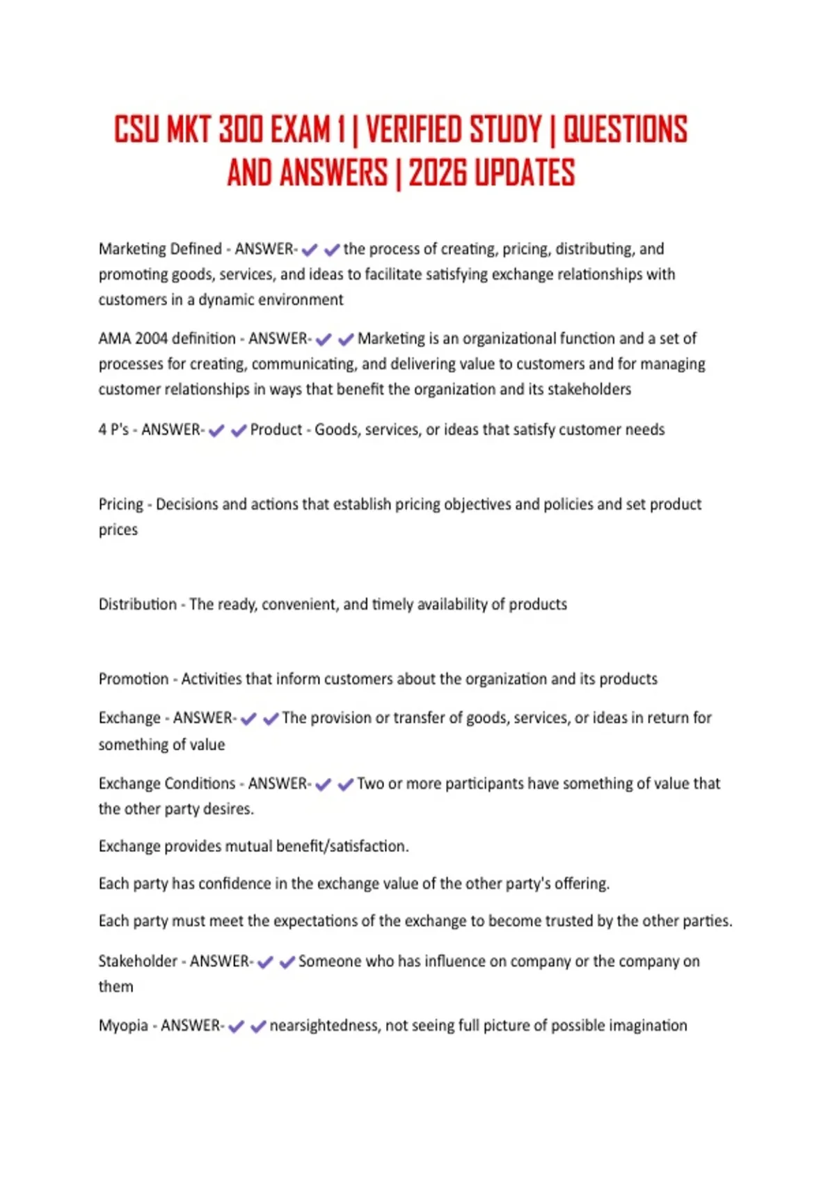 CSU MKT 300 EXAM 1 | VERIFIED STUDY | QUESTIONS AND ANSWERS | 2026 UPDATES