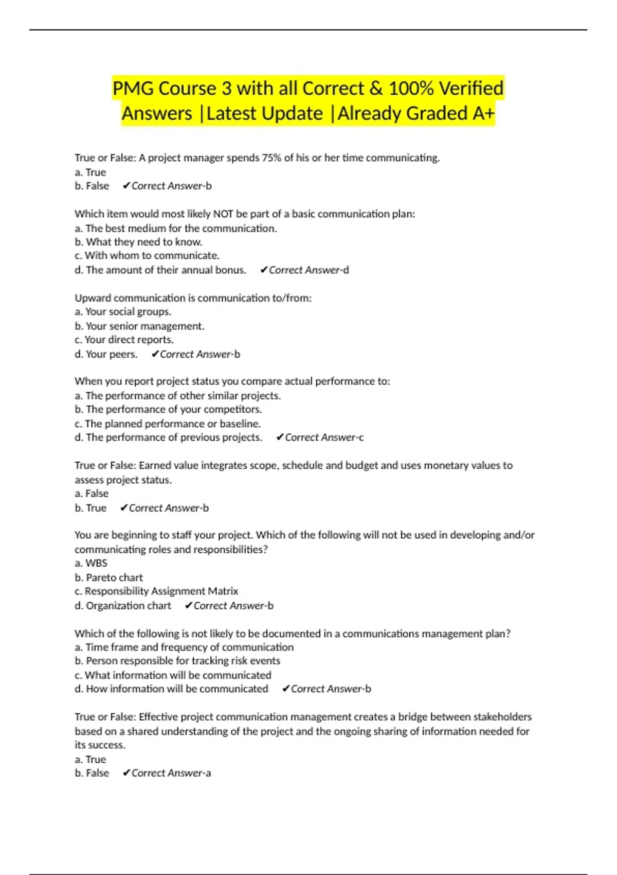 PMG Course 3 with all Correct & 100% Verified Answers |Latest Update |Already Graded A+