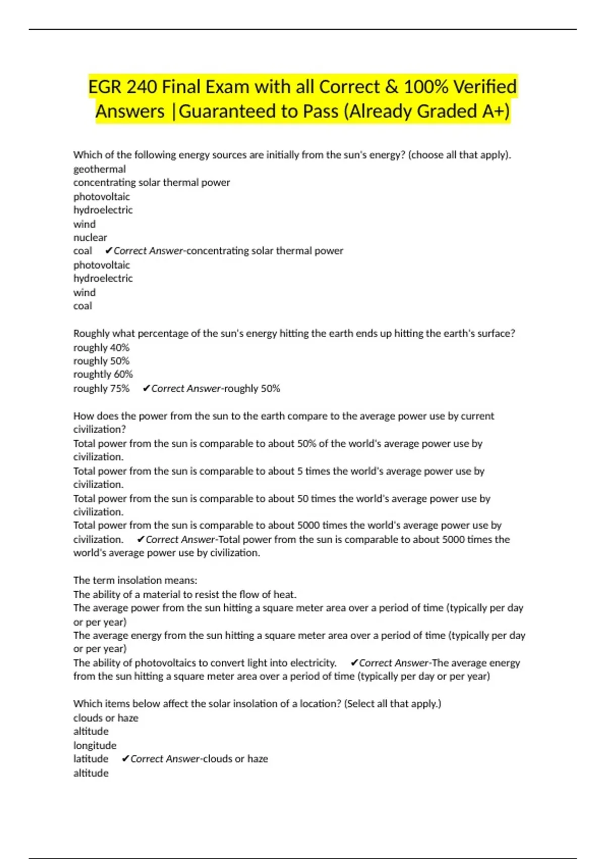 civilization. ✔Correct Answer-Total power from the sun is comparable to about 5000 times the