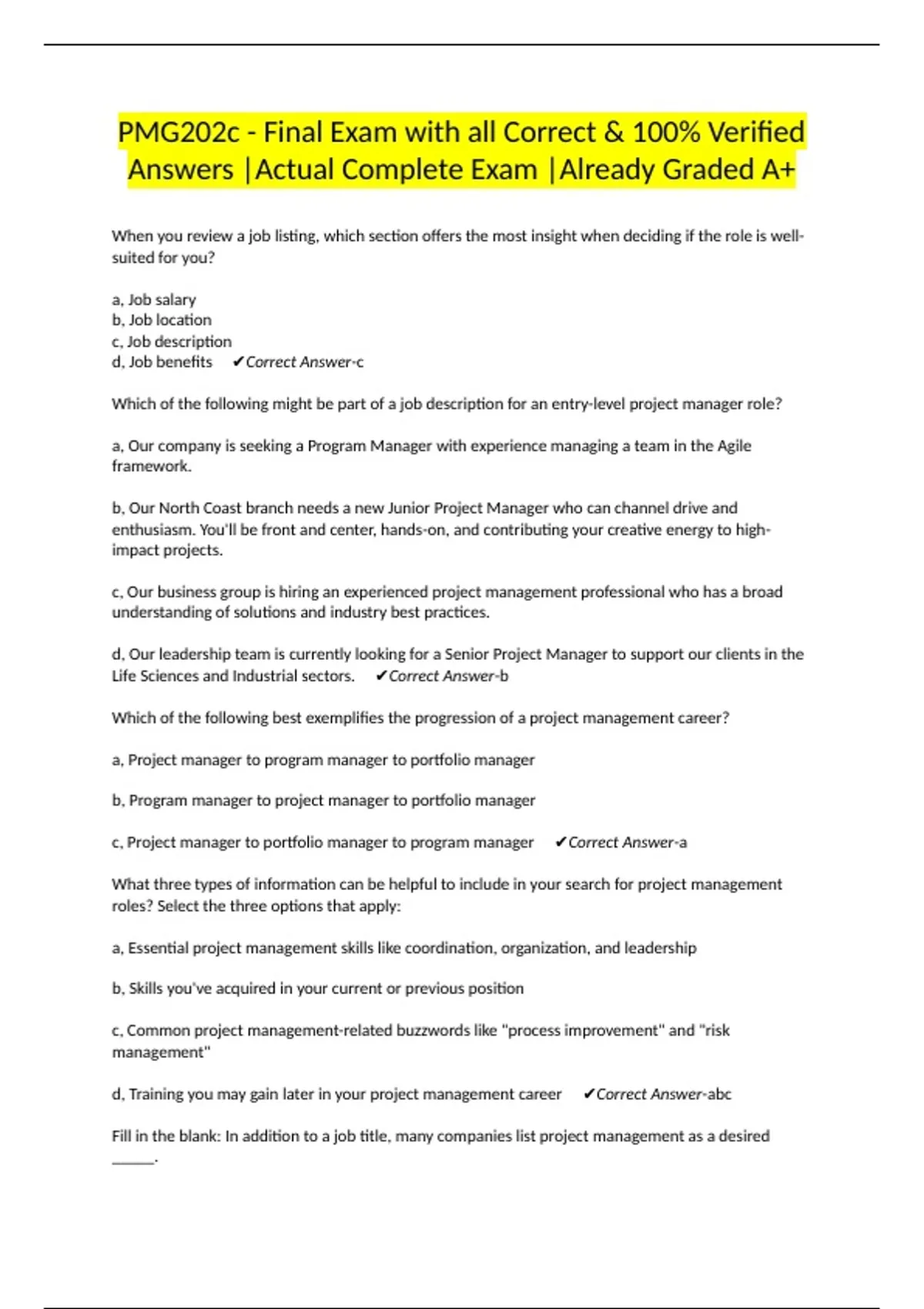 d, Training you may gain later in your project management career ✔Correct Answer-abc
