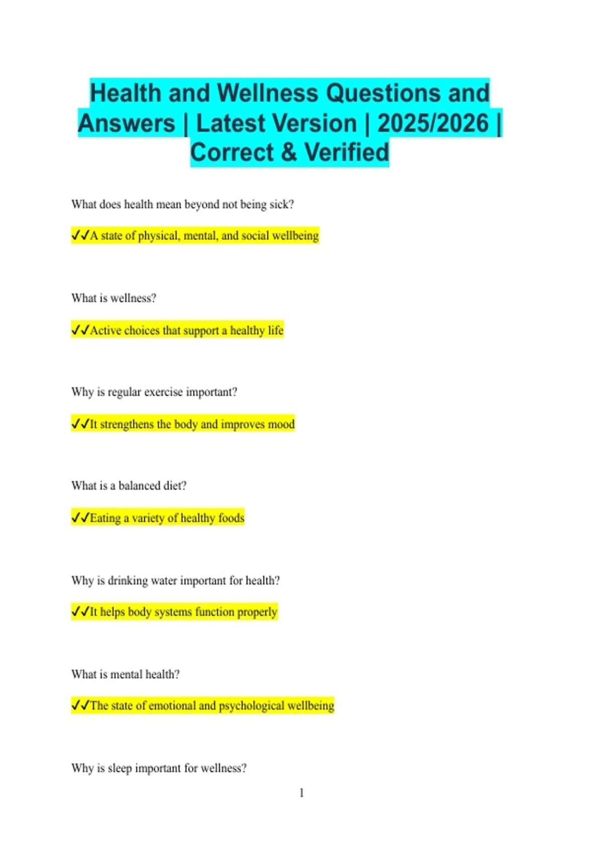 ✔✔A state of physical, mental, and social wellbeing