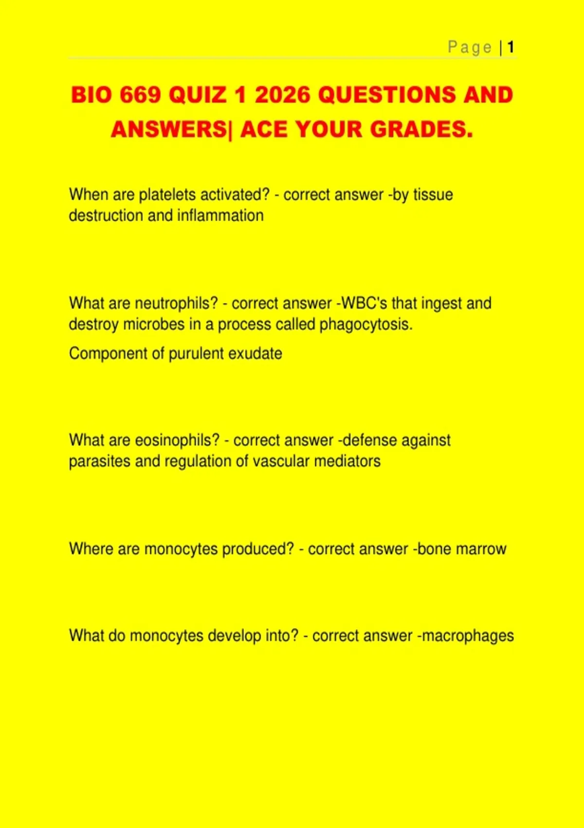 BIO 669 QUIZ 1 2026 QUESTIONS AND