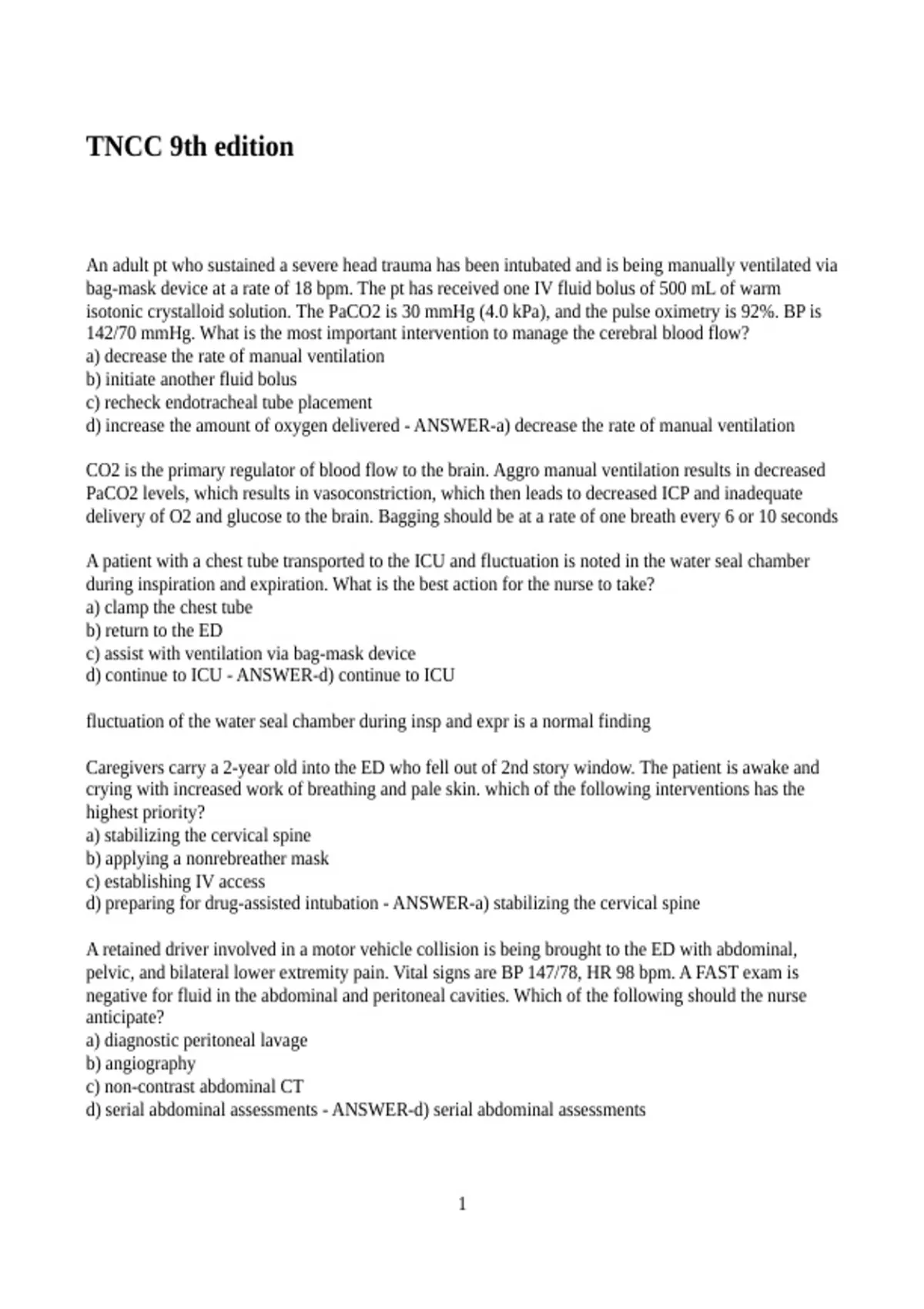 Exam of 10 pages for the course Nursing at Nursing (TNCC 9th edition)