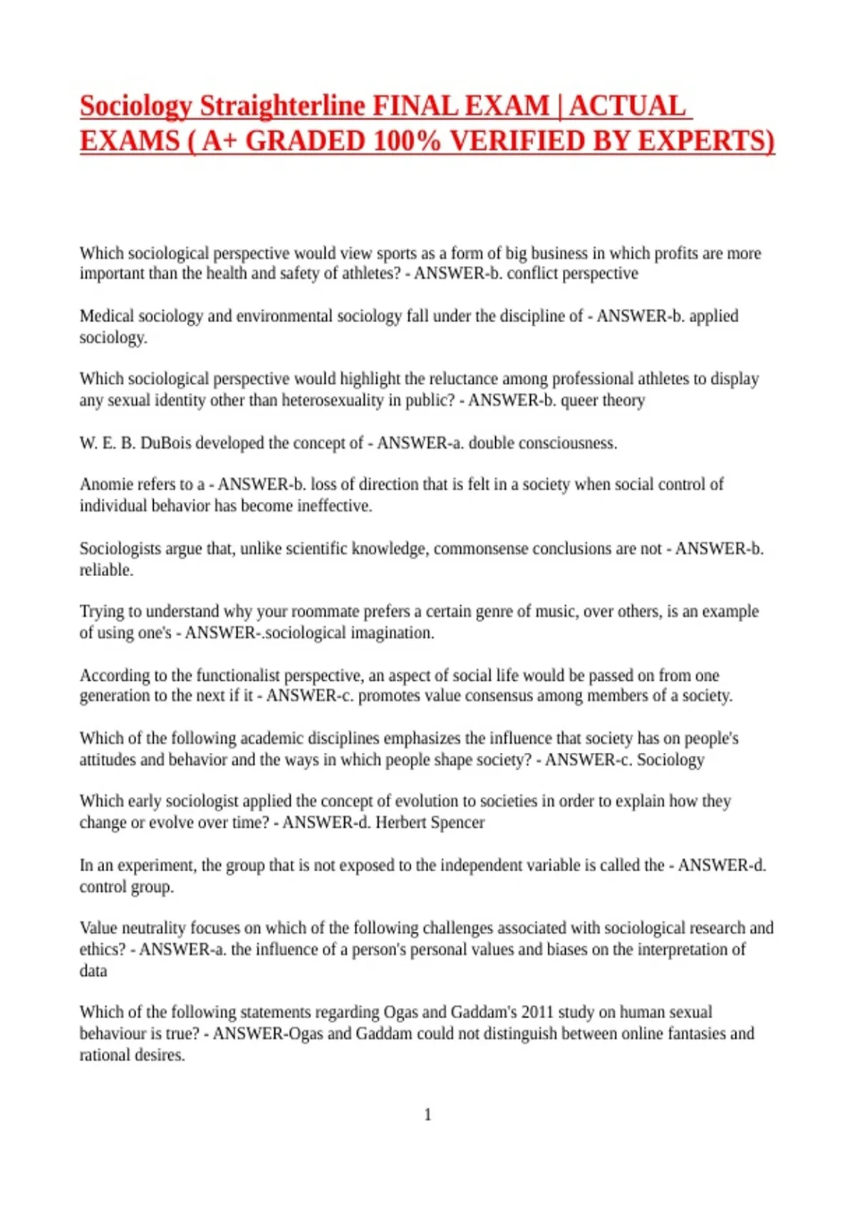 Sociology Straighterline FINAL EXAM | ACTUAL EXAMS ( A+ GRADED 100% VERIFIED BY EXPERTS)