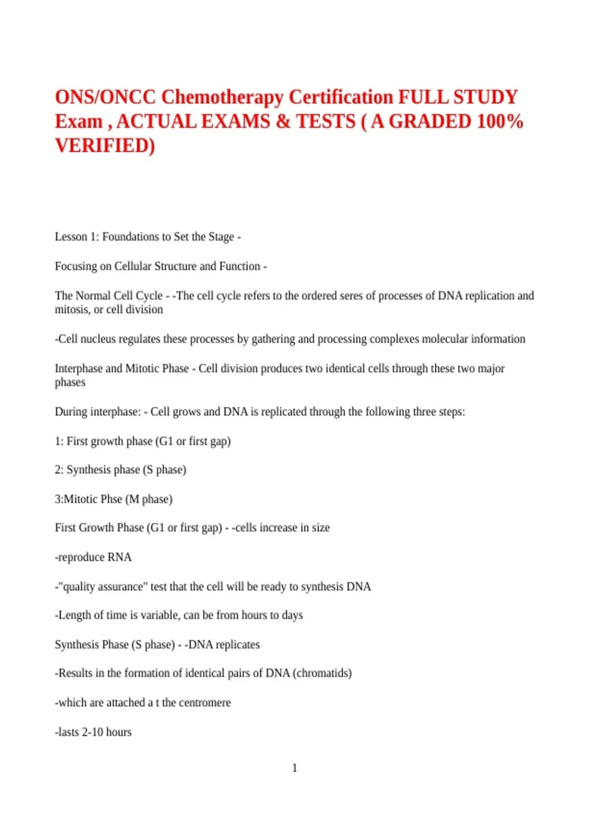ONS/ONCC Chemotherapy Certification FULL STUDY