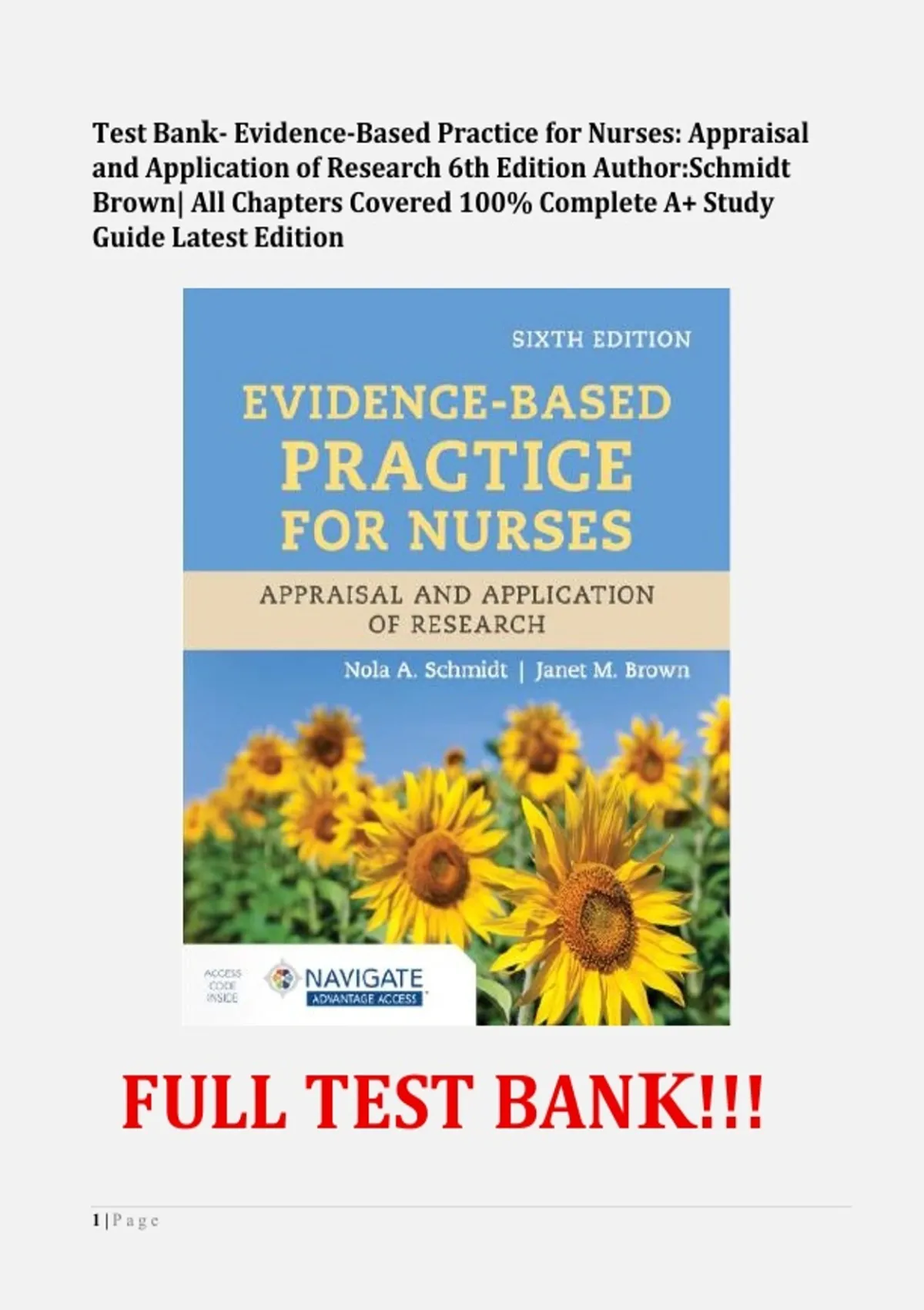 Test Bank Evidence-Based Practice for Nurses: Appraisal and Application of