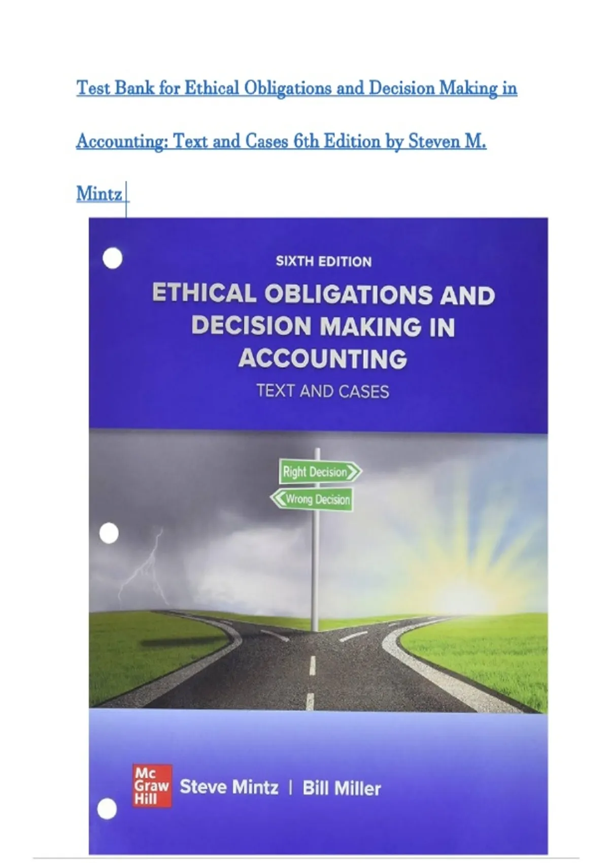 Test Bank for Ethical Obligations and Decision Making in Accounting: Text and Cases (6th Edition) by Steven M. Mintz| Latest 2026