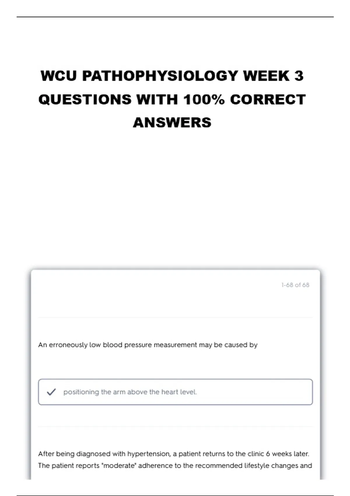 Exam of 19 pages for the course WCU Pathophysiology 370 at WCU Pathophysiology 370 (WCU Patho Week 3)