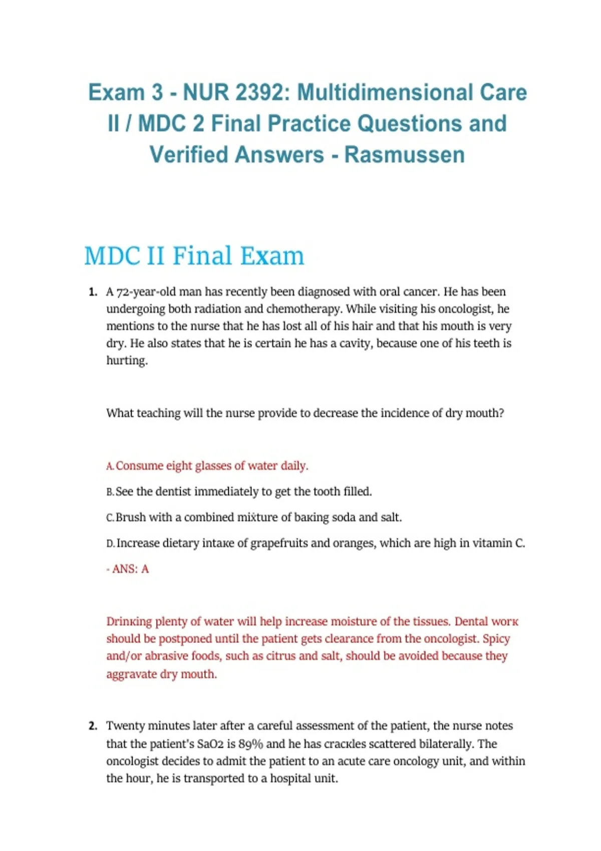II / MDC 2 Final Practice Questions and