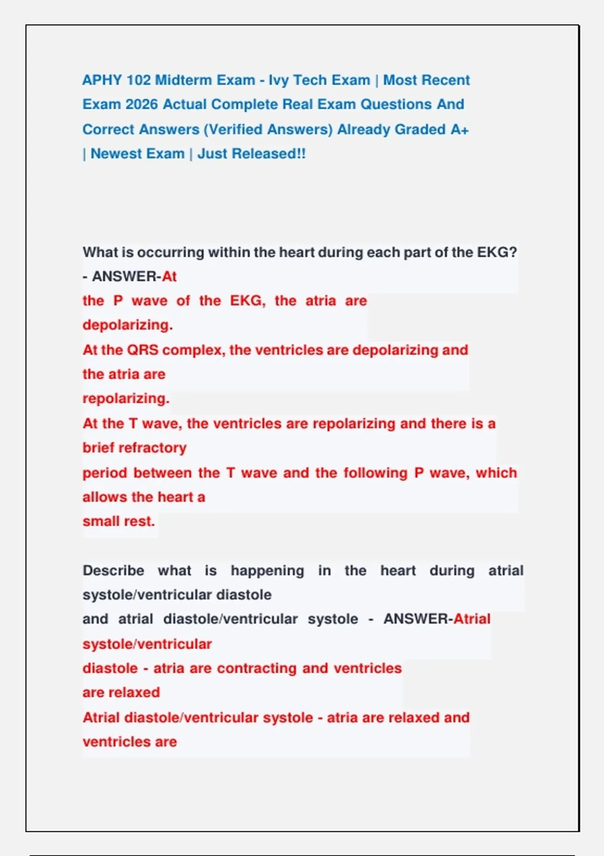 APHY 102 Midterm Exam - Ivy Tech Exam | Most Recent Exam 2026 Actual Complete Real Exam Questions And Correct Answers (Verified Answers) Already Graded A+ | Newest Exam | Just Released!! APHY 102 Midterm Exam - Ivy Tech Exam | Most Recent Exam 2026 Actual Complete Real Exam Questions And Correct Answers (Verified Answers) Already Graded A+ | Newest Exam | Just Released!! APHY 102 Midterm Exam - Ivy Tech Exam | Most Recent Exam 2026 Actual Complete Real Exam Questions And Correct Answers (Verified Answers) Already Graded A+ | Newest Exam | Just Released!! APHY 102 Midterm Exam - Ivy Tech Exam | Most Recent Exam 2026 Actual Complete Real Exam Questions And Correct Answers (Verified Answers) Already Graded A+ | Newest Exam | Just Released!! APHY 102 Midterm Exam - Ivy Tech Exam | Most Recent Exam 2026 Actual Complete Real Exam Questions And Correct Answers (Verified Answers) Already Graded A+ | Newest Exam | Just Released!! APHY 102 Midterm Exam - Ivy Tech Exam | Most Recent Exam 2026 Actual Complete Real Exam Questions And Correct Answers (Verified Answers) Already Graded A+ | Newest Exam | Just Released!!