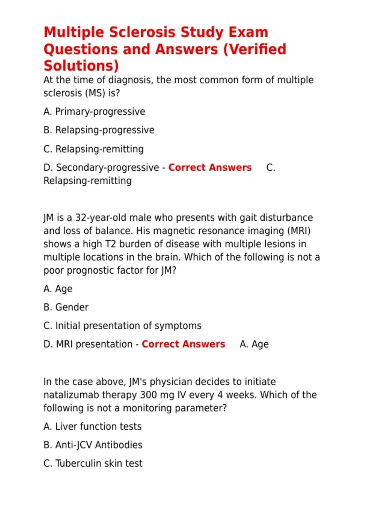D. Secondary-progressive - Correct Answers ✅C.