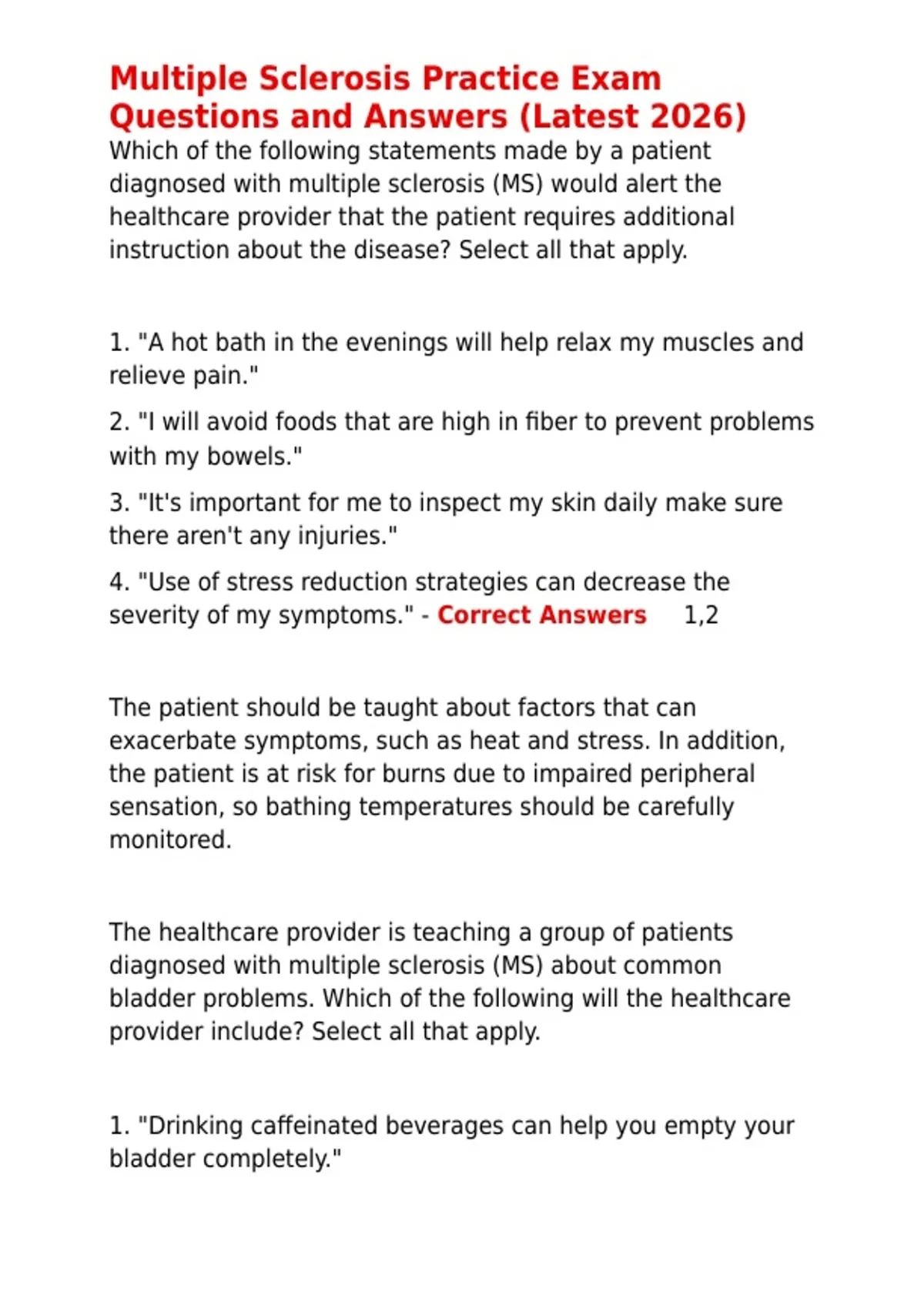 , Multiple Sclerosis Practice Exam