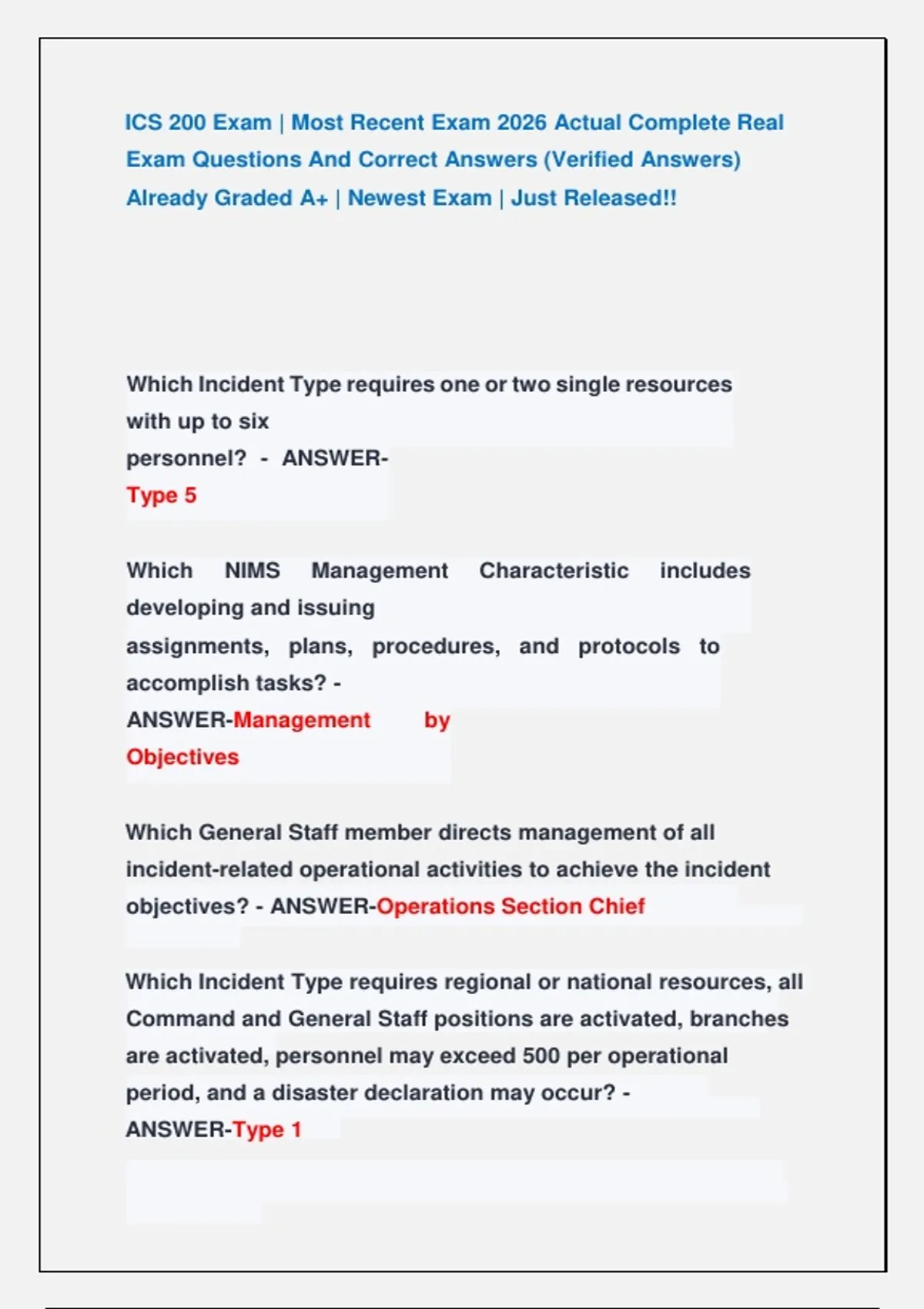 ICS 200 Exam | Most Recent Exam 2026 Actual Complete Real Exam Questions And Correct Answers (Verified Answers) Already Graded A+ | Newest Exam | Just Released!! ICS 200 Exam | Most Recent Exam 2026 Actual Complete Real Exam Questions And Correct Answers (Verified Answers) Already Graded A+ | Newest Exam | Just Released!! ICS 200 Exam | Most Recent Exam 2026 Actual Complete Real Exam Questions And Correct Answers (Verified Answers) Already Graded A+ | Newest Exam | Just Released!! ICS 200 Exam | Most Recent Exam 2026 Actual Complete Real Exam Questions And Correct Answers (Verified Answers) Already Graded A+ | Newest Exam | Just Released!! ICS 200 Exam | Most Recent Exam 2026 Actual Complete Real Exam Questions And Correct Answers (Verified Answers) Already Graded A+ | Newest Exam | Just Released!! ICS 200 Exam | Most Recent Exam 2026 Actual Complete Real Exam Questions And Correct Answers (Verified Answers) Already Graded A+ | Newest Exam | Just Released!! ICS 200 Exam | Most Recent Exam 2026 Actual Complete Real Exam Questions And Correct Answers (Verified Answers) Already Graded A+ | Newest Exam | Just Released!!