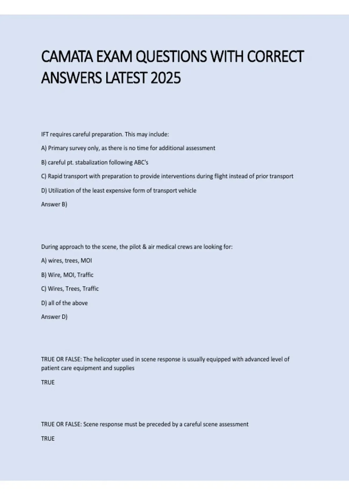 CAMATA EXAM QUESTIONS WITH CORRECT