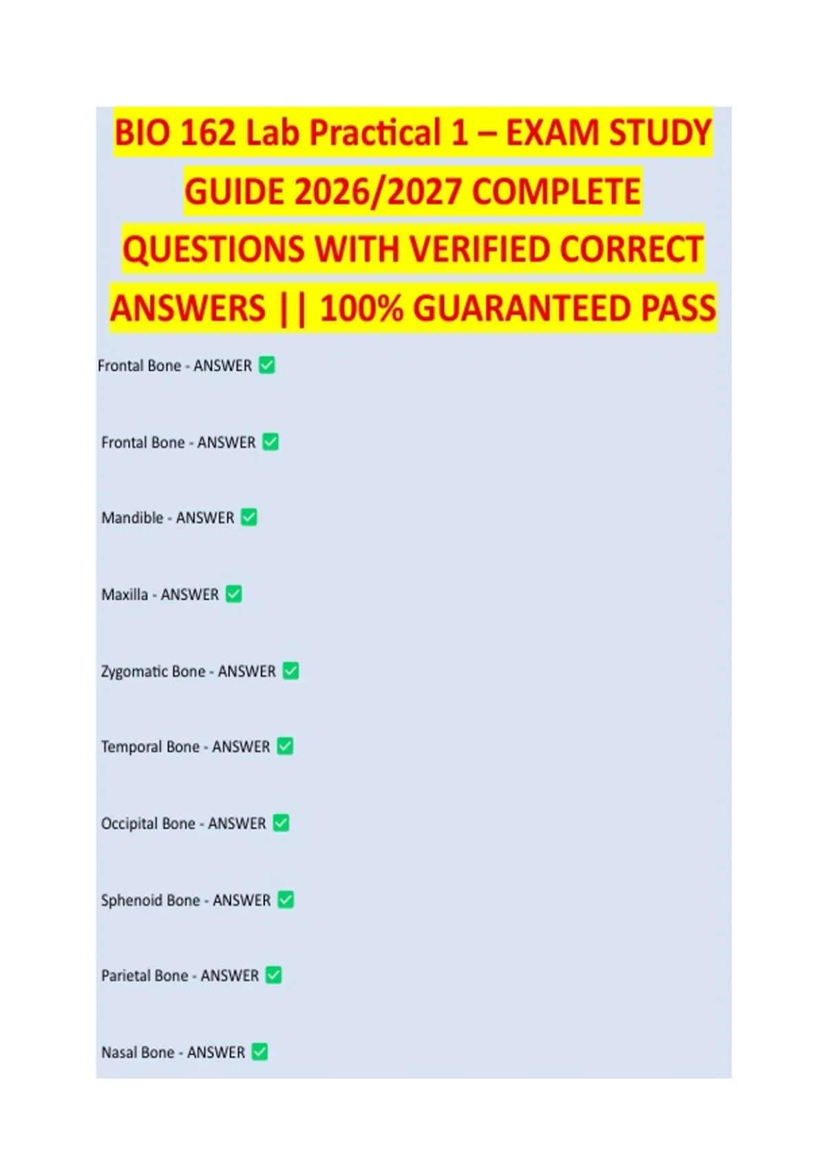 BIO 162 Lab Practical 2 (PSU) – EXAM STUDY GUIDE 2026/2027 COMPLETE QUESTIONS WITH VERIFIED CORRECT ANSWERS || 100% GUARANTEED PASS <NEWEST VERSION>