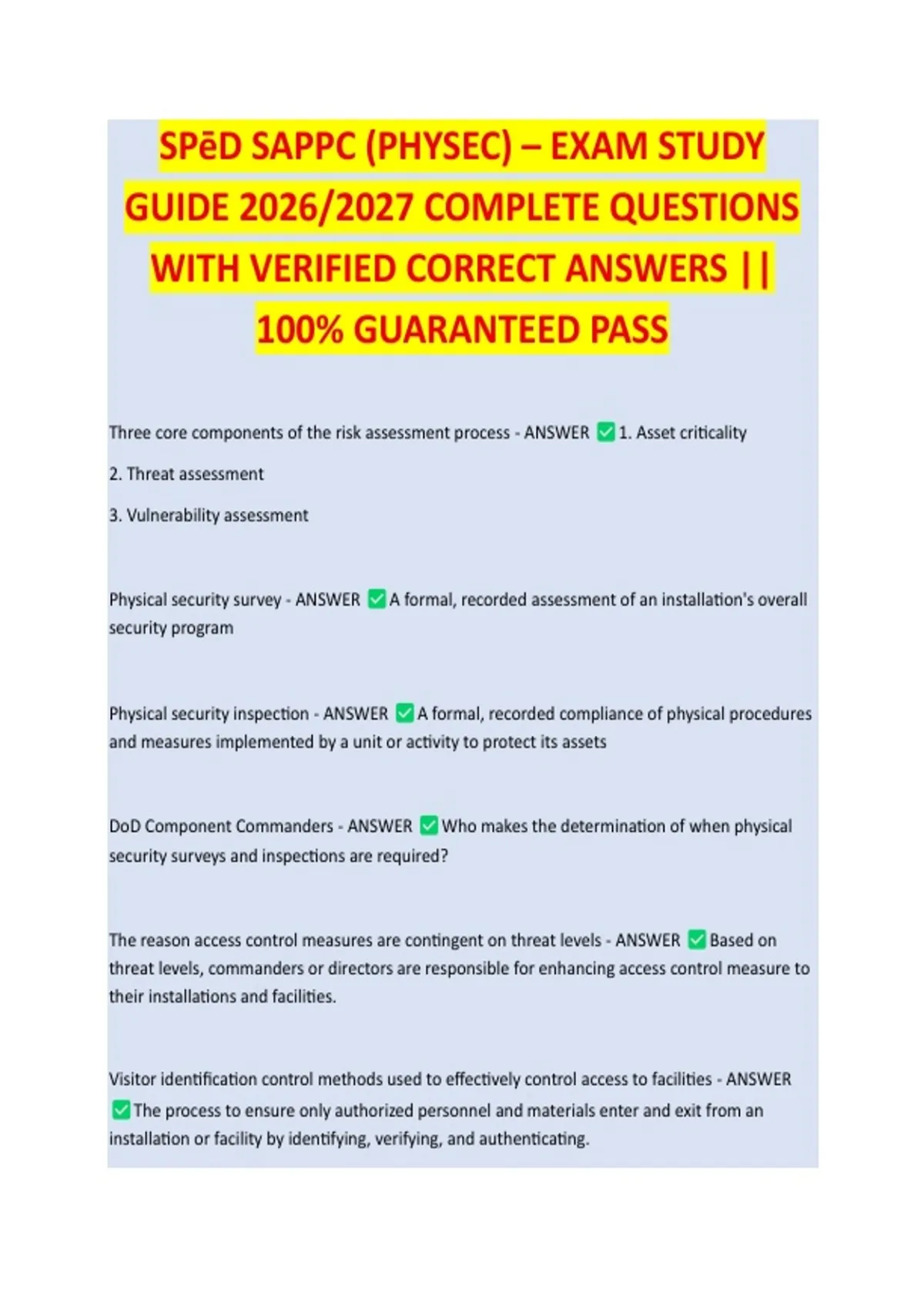 SPēD SAPPC (PHYSEC) – EXAM STUDY GUIDE 2026/2027 COMPLETE QUESTIONS WITH VERIFIED CORRECT ANSWERS || 100% GUARANTEED PASS <NEWEST VERSION>